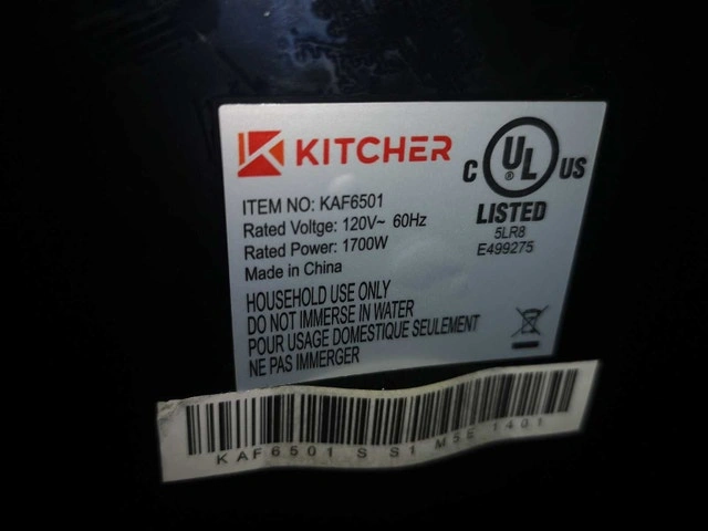 Cook up a storm with this Kitcher air fryer, perfect for creating crispy and delicious meals with less oil! This unit, model KAF6501, is in used condition and ready for its next culinary adventure. Here are some key details: