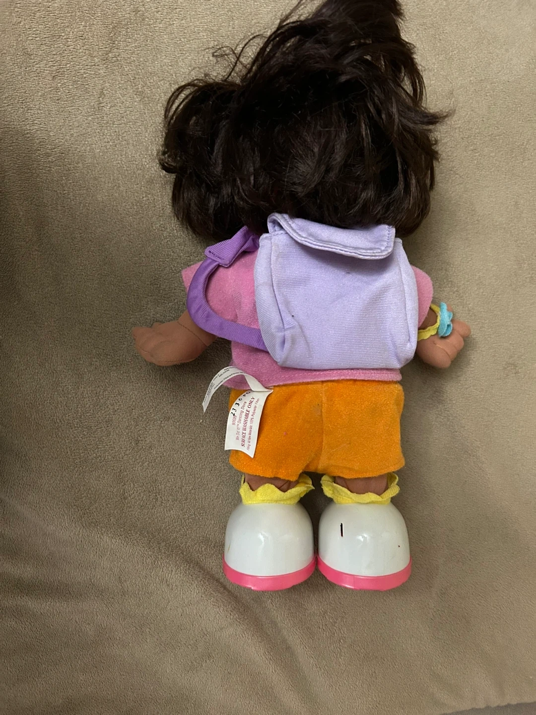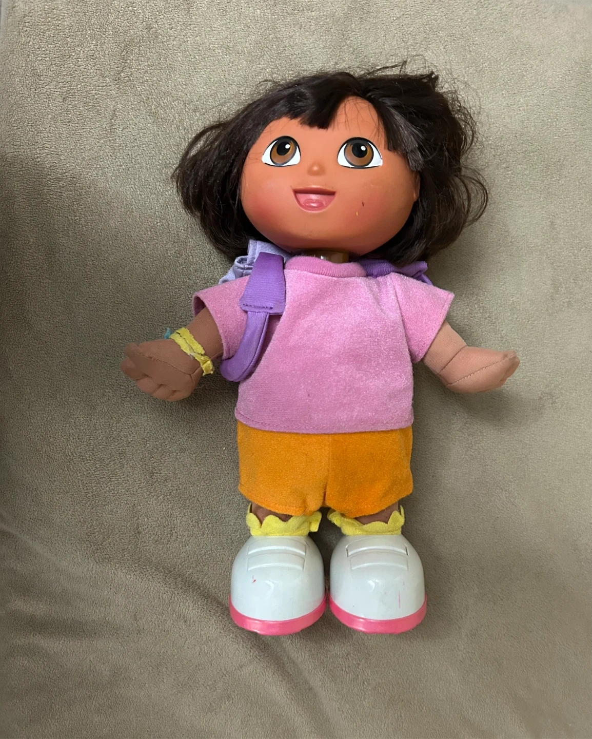 This is a used Dora the Explorer doll, perfect for young fans of the show. The doll comes with her signature purple backpack and orange shorts. It has been gently played with but is in good condition, ready for new adventures.