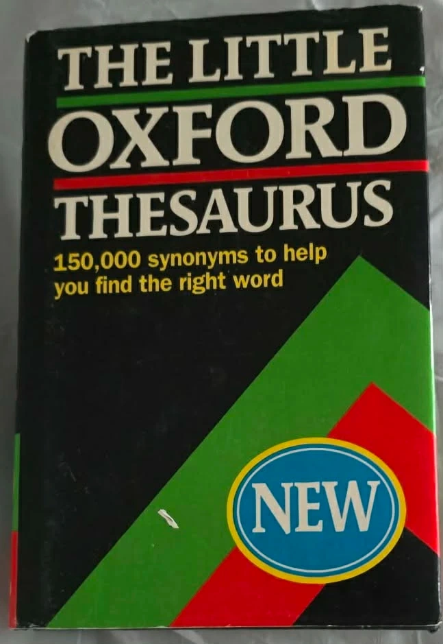 This is The Little Oxford Thesaurus, containing 150,000 synonyms to help you find the right word. It's a handy reference for writers and students. This edition is marked as 'NEW'.