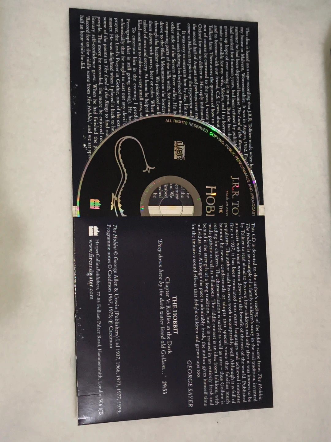 ✔ Exclusive 1952 archive audio CD of Tolkien reading “Riddles in the Dark”