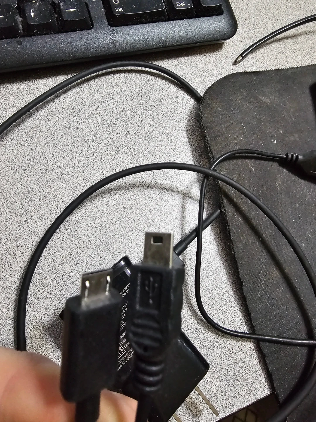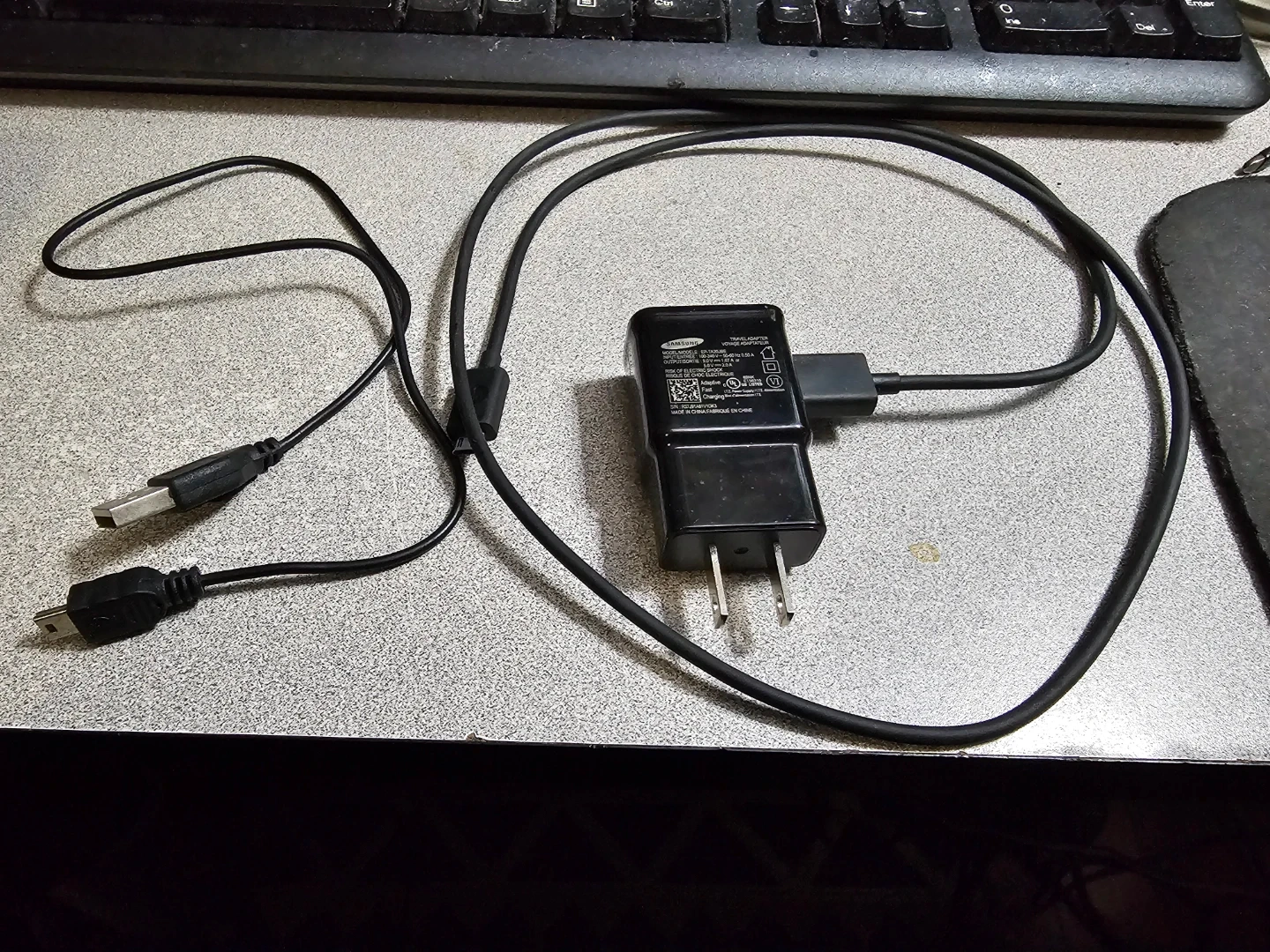 This is a black Samsung travel adapter with a USB cable. It's a charging adapter for electronic devices. The adapter has an output of 5.0V - 2.0A.
