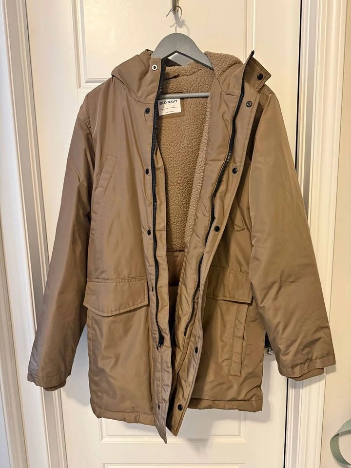 Selling a brand new, never worn Men’s Old Navy puffer jacket in a classic brown. This coat still has that "new" feel and is in pristine 10/10 condition. It’s lightweight but built for warmth, featuring a water-resistant shell that's perfect for Ontario winters.