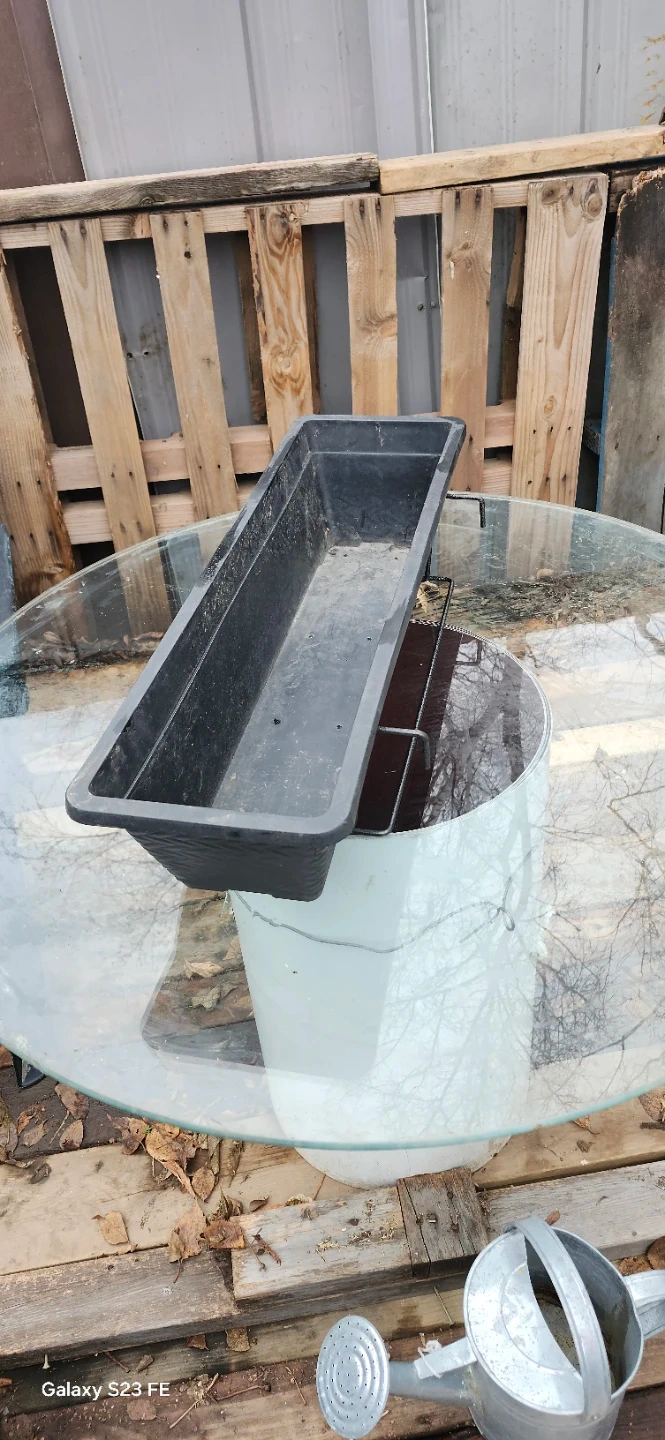Used excellent Condition. This is a black rectangular planter box. It's made of plastic. The planter has a textured finish. Price only cash only pickup no delivery 801 O'Connor drive outside TD Canada Trust bank door East York