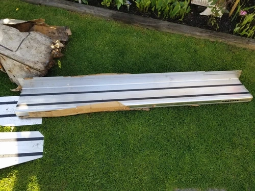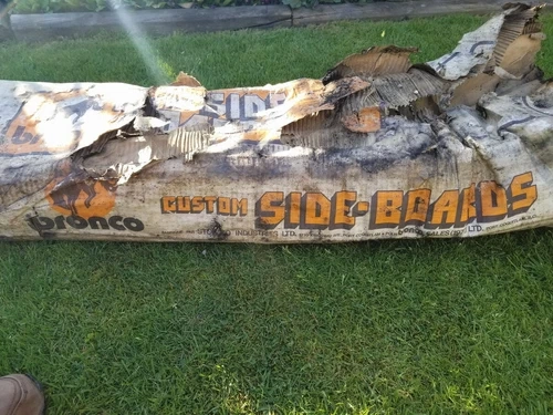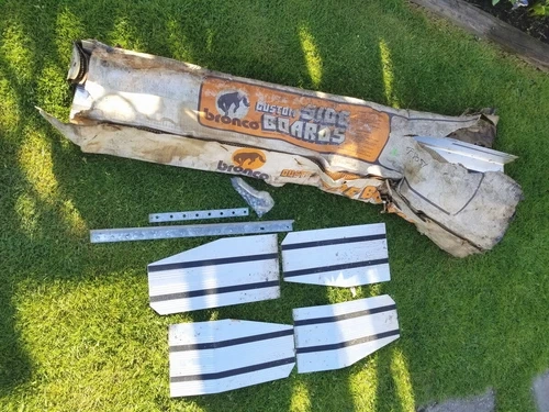 Vintage Bronco truck custom side boards, made in Canada. This set appears to be made of strong, solid aluminum and is in new condition. All accessories originally included are present. The original box was damaged by water, but the boards themselves are new and have never been installed. A couple of small clamps show minor surface rust. Feel free to message if you have any questions!