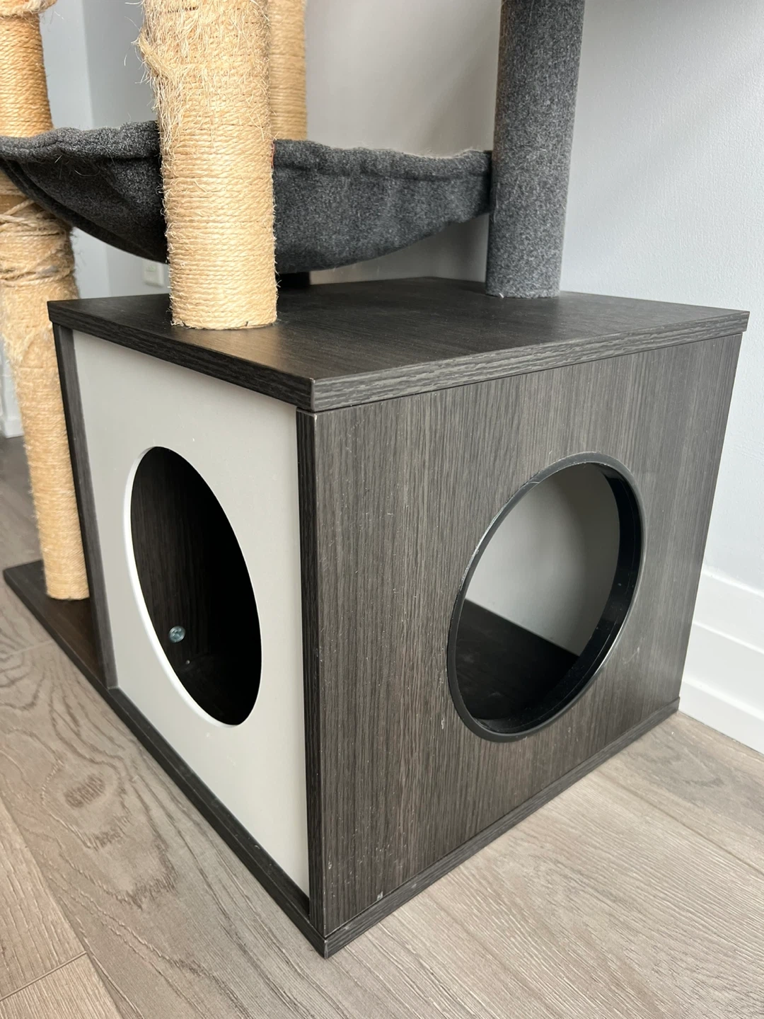 Condition: Good and sturdy. Note: The scratching posts show wear from use, hence the lower price.