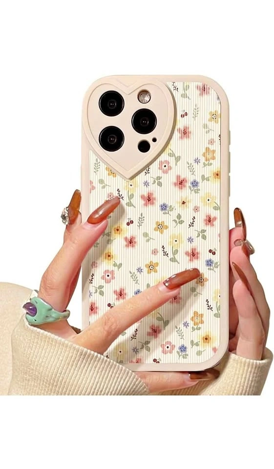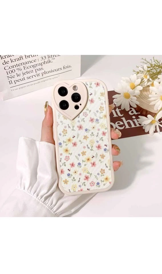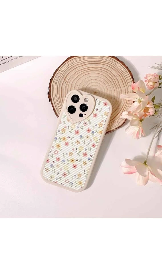 Cute floral leaf design with love lens bumper protector for iPhone 13 Pro. Made of soft TPU for shockproof protection. Girly style.