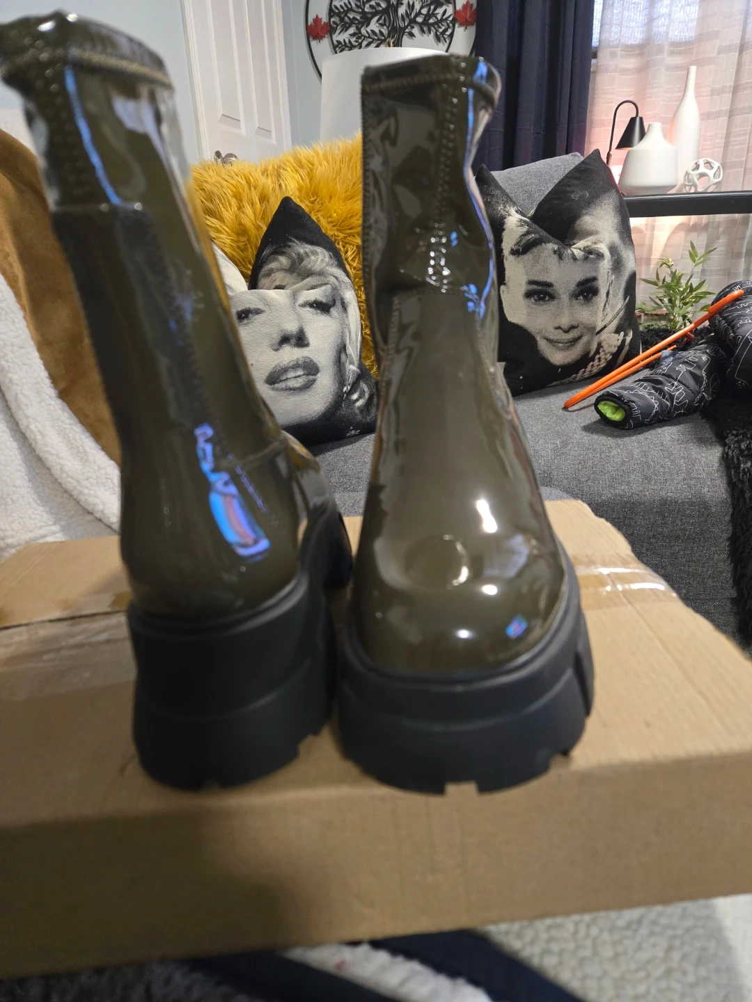 Selling a pair of Aldo Call It Spring boots in a unique olive green colour! These boots are a US size 8, EUR 38.5, and UK 5.5. They have a chunky platform sole. Perfect for adding a bit of edge to your outfit!
