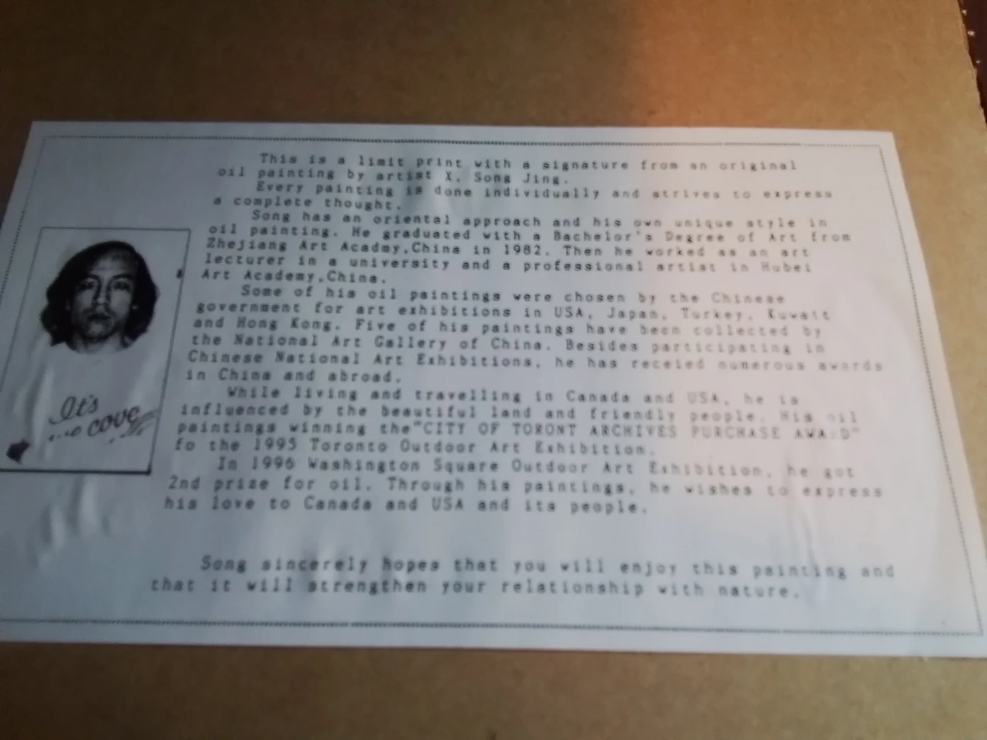 This limited edition Song Jing print is a stunning piece featuring a signature from an original oil painting by the artist X. Song Jing, numbered 7/100. This print showcases Song's unique oriental style and his experiences in China, Canada, and the USA. It is framed and ready to add a touch of elegance to any space.