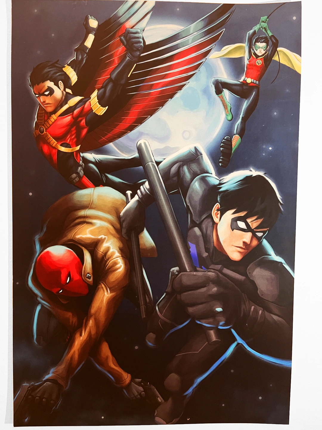 Batman's Robins by me! 12x18 inches, semi gloss paper. I have a lot more anime and comic poster on sale. Check out my full listing. Buy any 3 of my posters for $25. For more of my work check out: