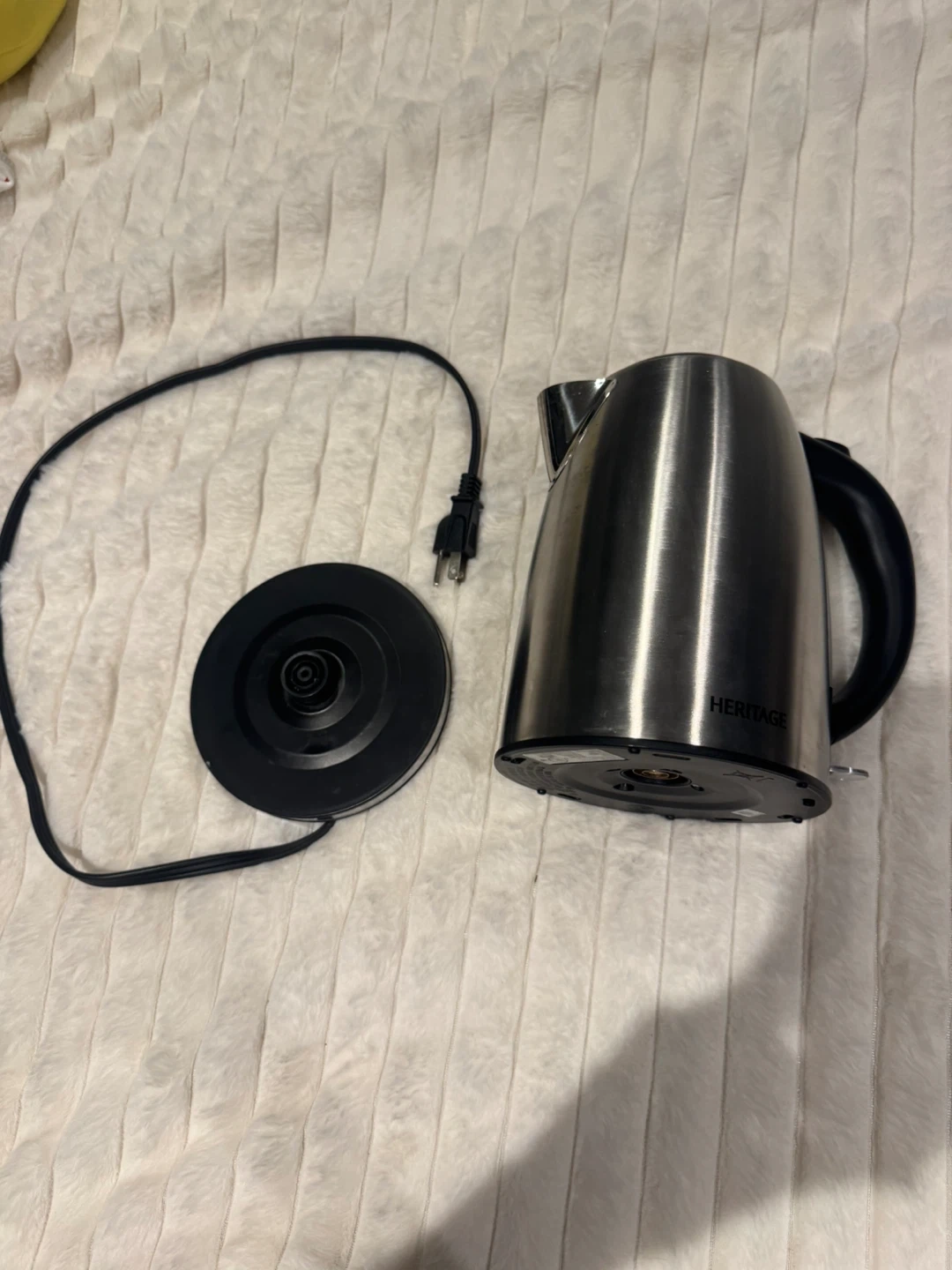 Selling a Heritage stainless steel electric kettle. It's in great shape and ready to boil water quickly for your tea or coffee! It comes with the base and power cord.