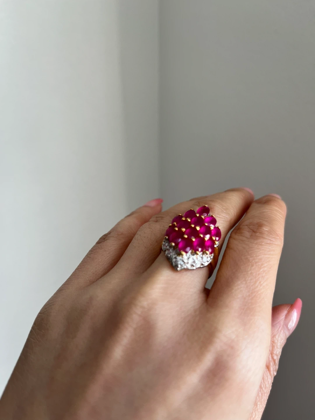 Cocktail Ring with Marquise-cut Rubies and White Stones
