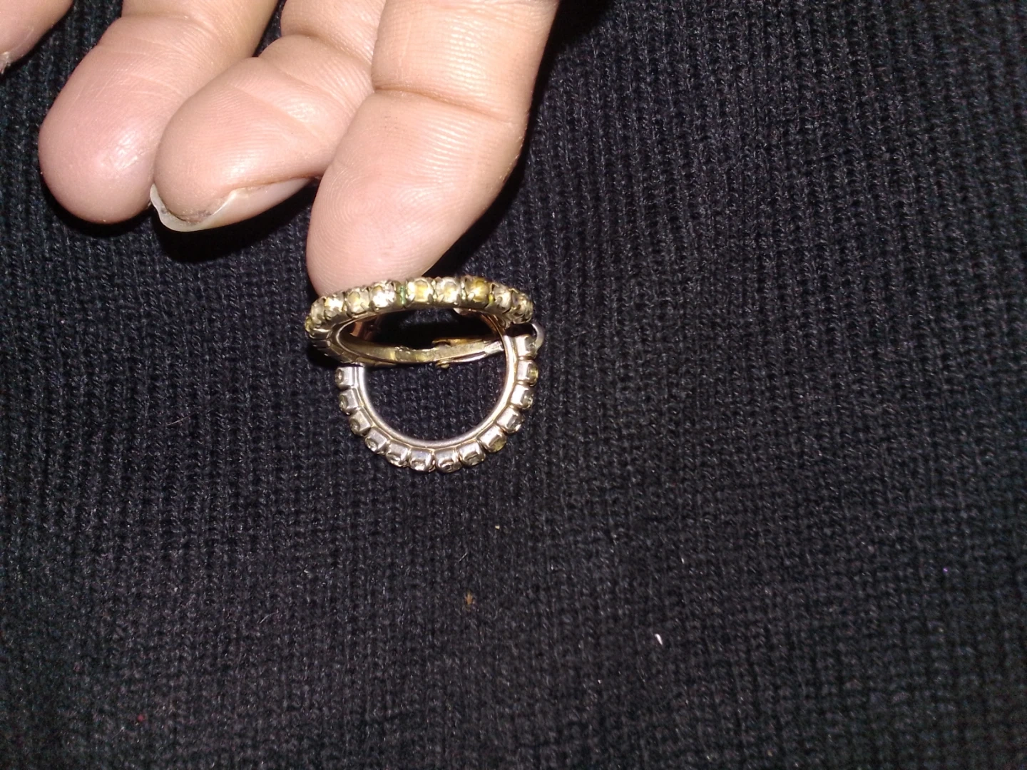 Two rings are shown, both adorned with small, clear stones. One ring appears to be gold-toned, and the other silver-toned. They are both sparkly! The rings look like they are meant for fashion or costume jewellery.