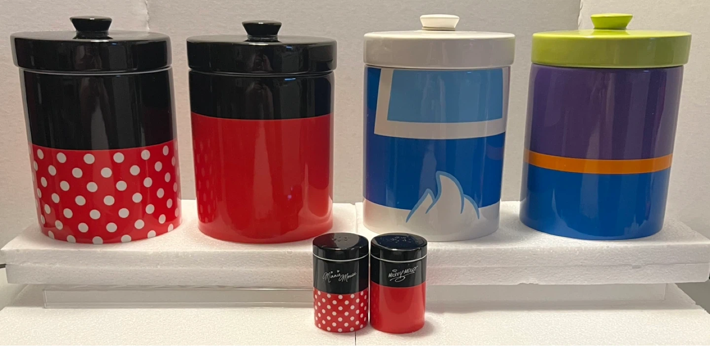 • 4 large canisters (Mickey, Minnie, Donald, Goofy)