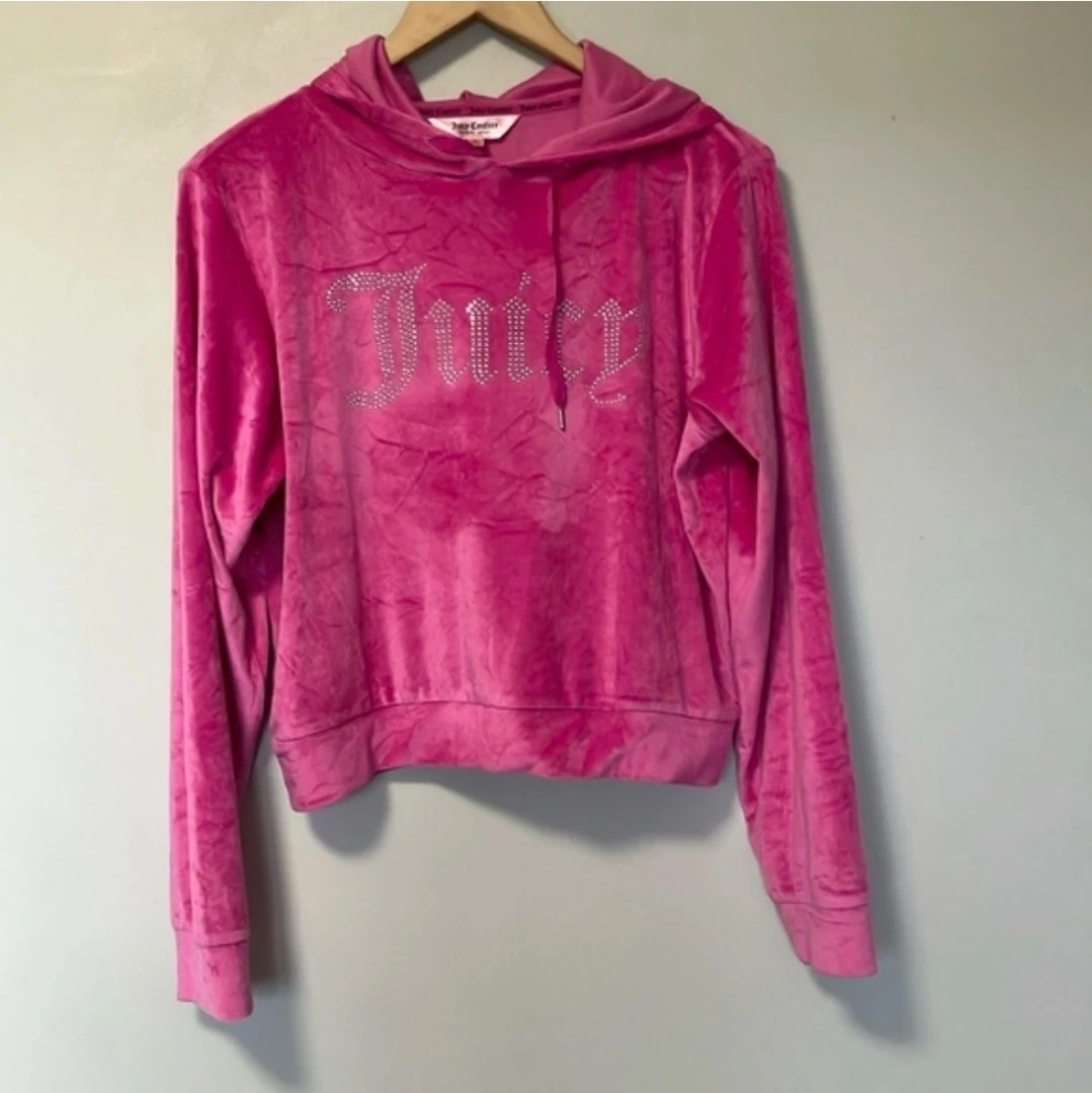 JUICY COUTURE Pink Velour Rhinestone Logo Hoodie - NWOT Large