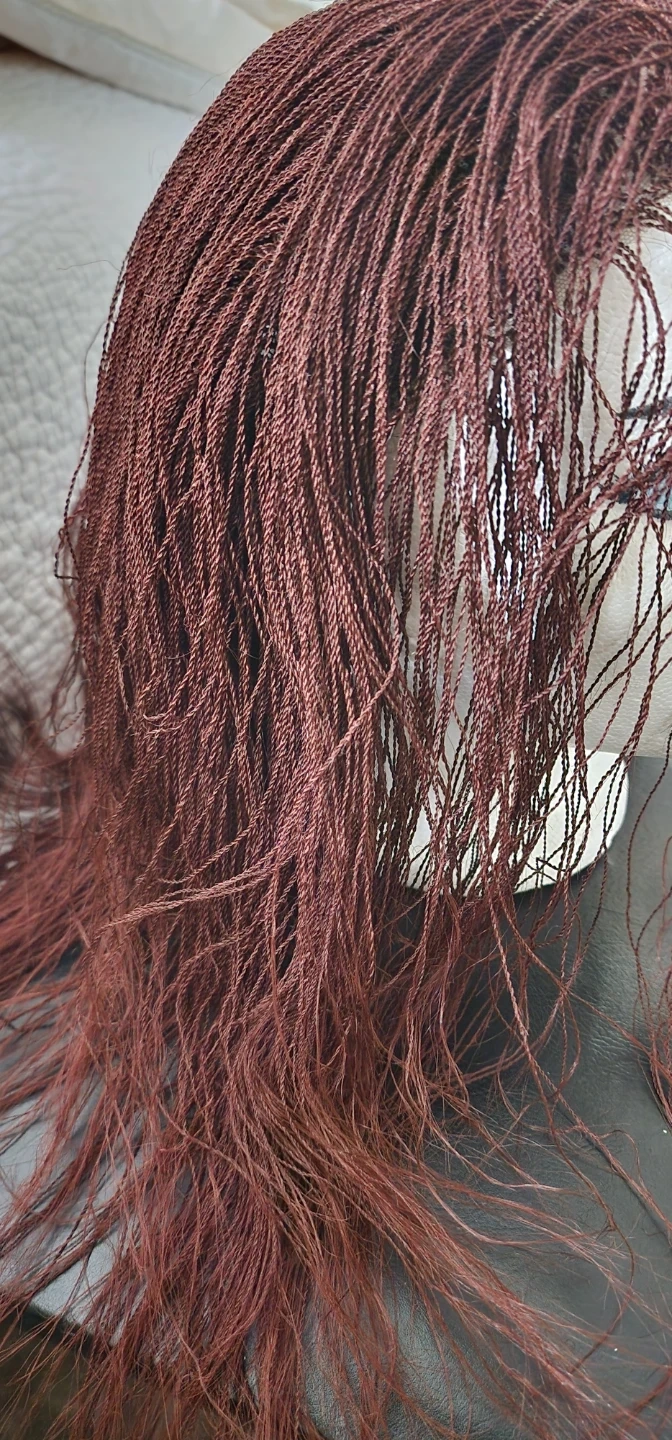 Selling a micro twist hand braided wig in a lovely brown colour. Its newly done & ready for a new style!