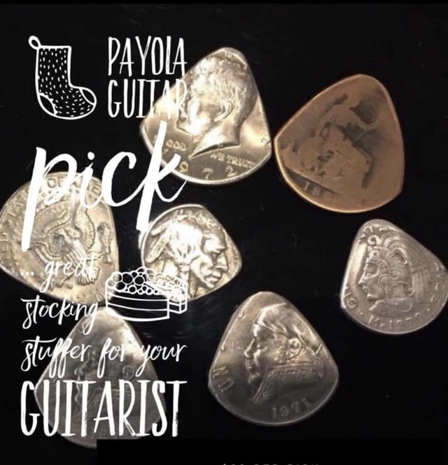 Unique Christmas stocking stuffer for guitarists! Handcrafted guitar picks made from various coins: Swiss franc, Jamaican 50 cent coin, US 1912 Liberty Head nickel, US quarter, French franc, and British 10 franc. $20 each or 2 for $35. Porch pickup in NW Burlington.