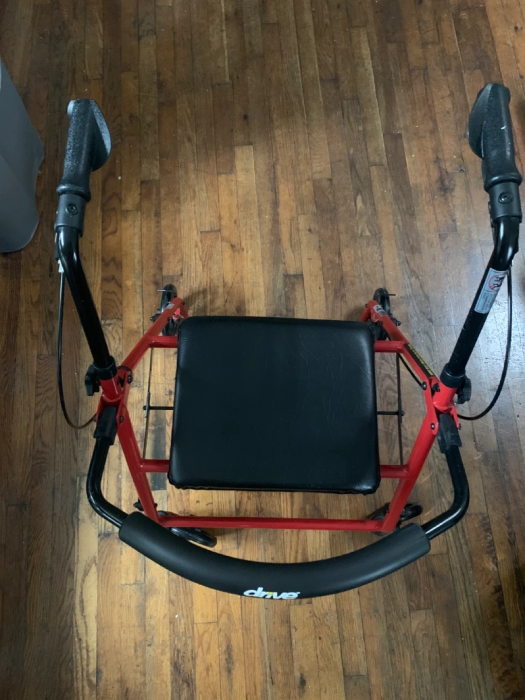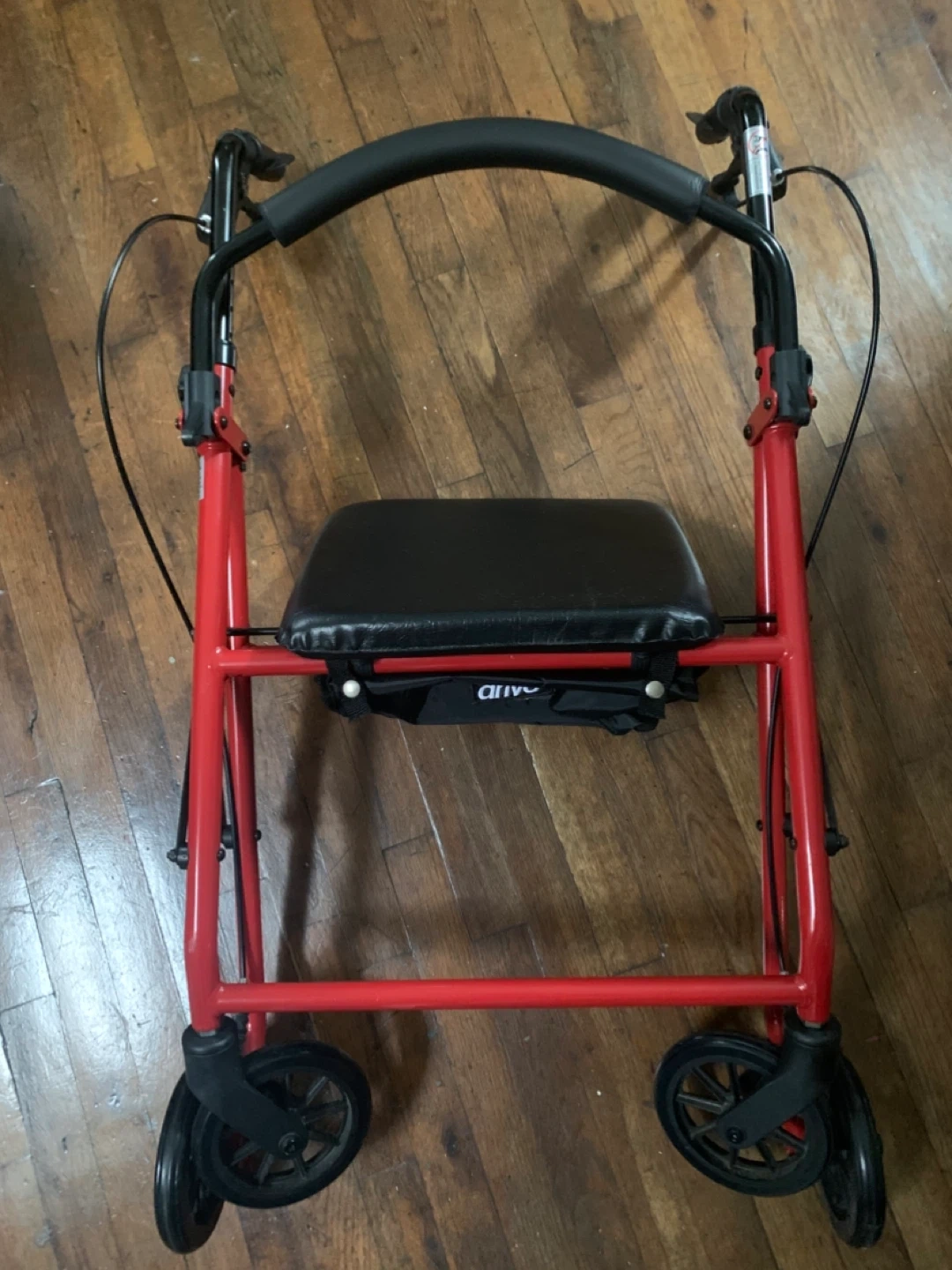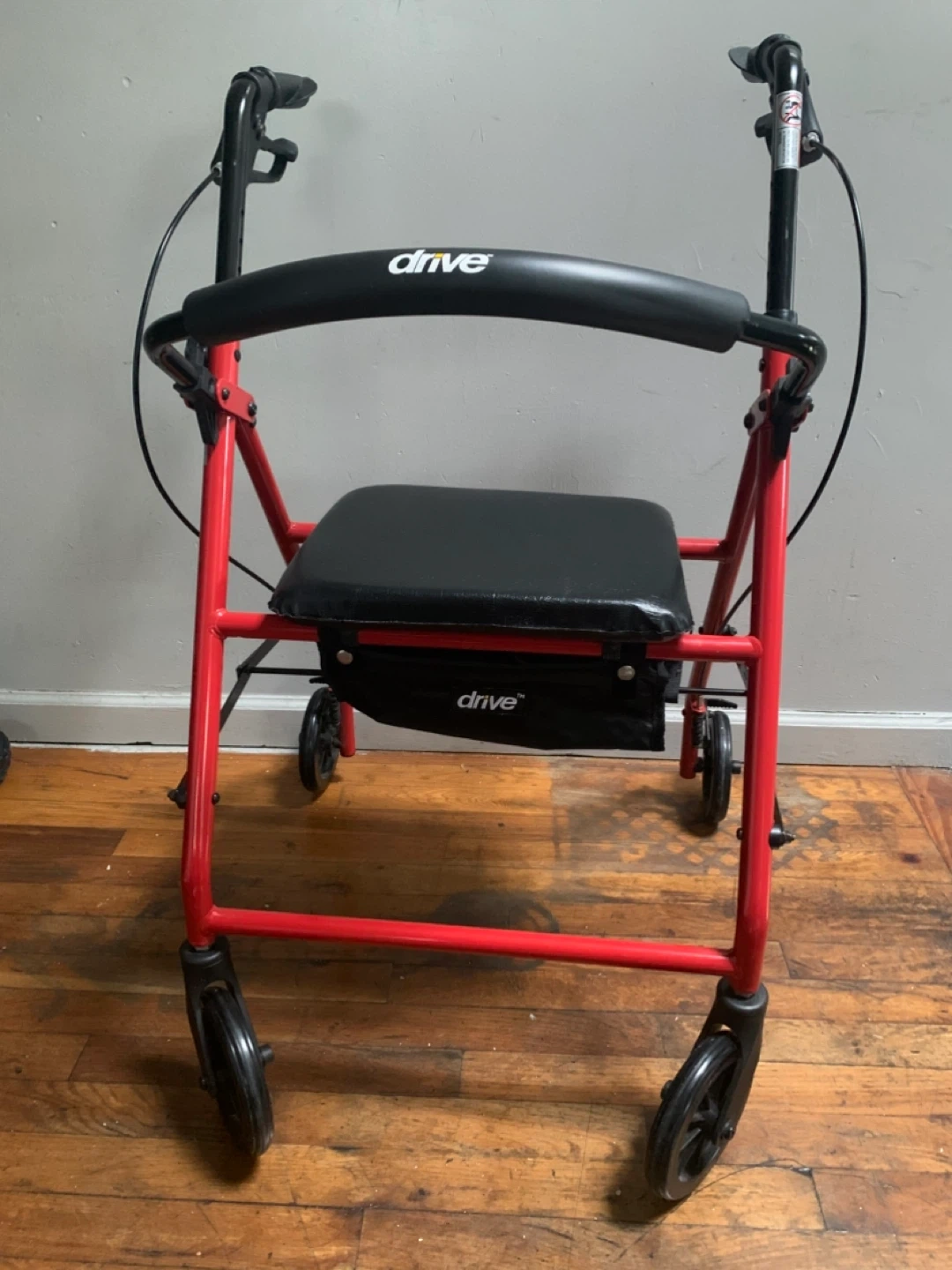 Selling a Drive Medical rollator walker in good condition! It's red with a black seat and a storage bag underneath. Perfect for anyone needing a little extra support while getting around.