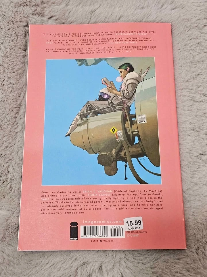 Saga by Brian K. Vaughan & Fiona Staples. Paperback graphic novels from the award-winning series. All books are in good condition - clean pages, light shelf wear (see photos). Available as a set or individually. $30 CAD for all 3 books or $12 CAD each. Pickup in Coquitlam. Cash only.