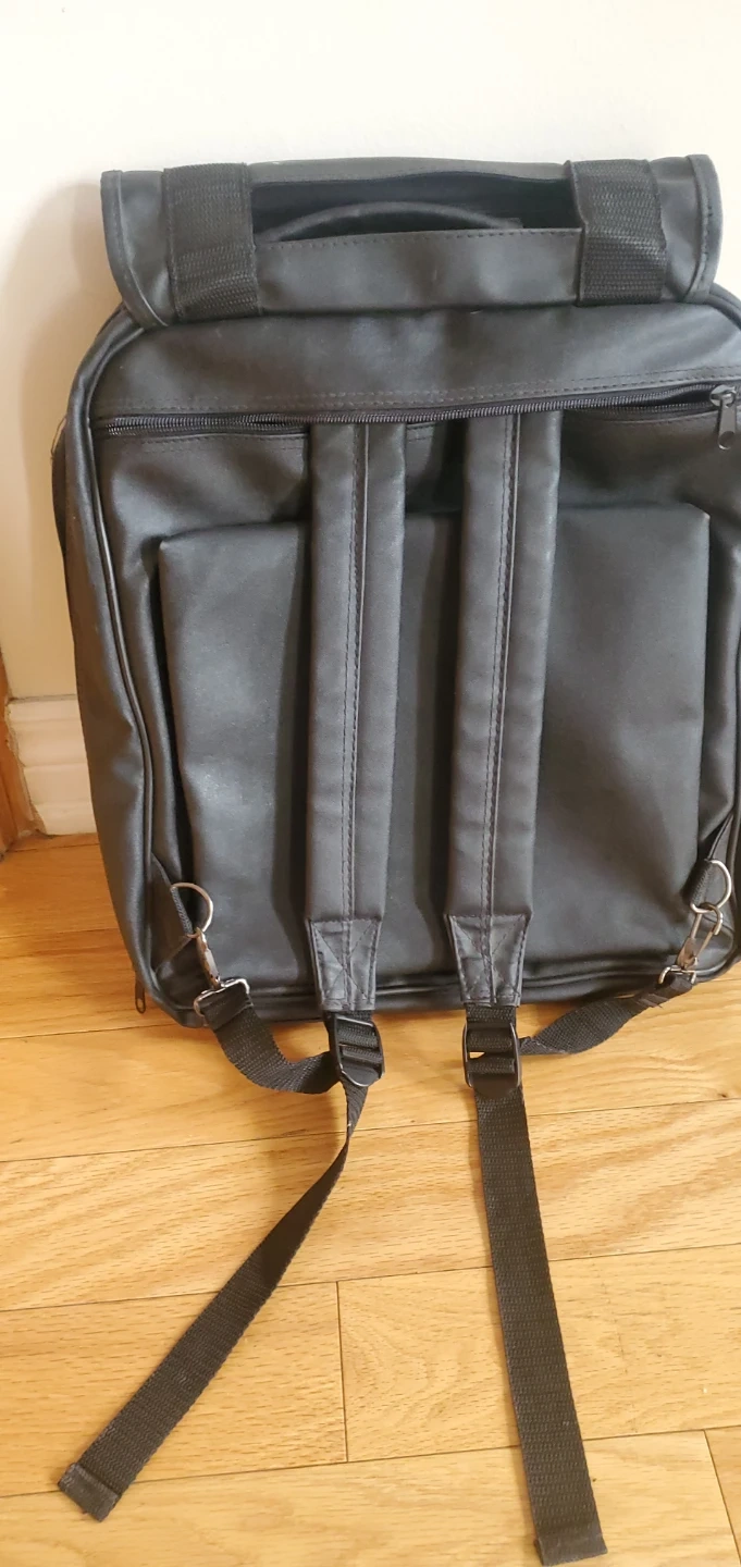 Selling a black backpack. It has a many compartments inside and adjustable straps. Excellent buy for business laptops and lots of Documents, good for lawyers, doctors, universities, It's in excellent condition and ready for a new owner