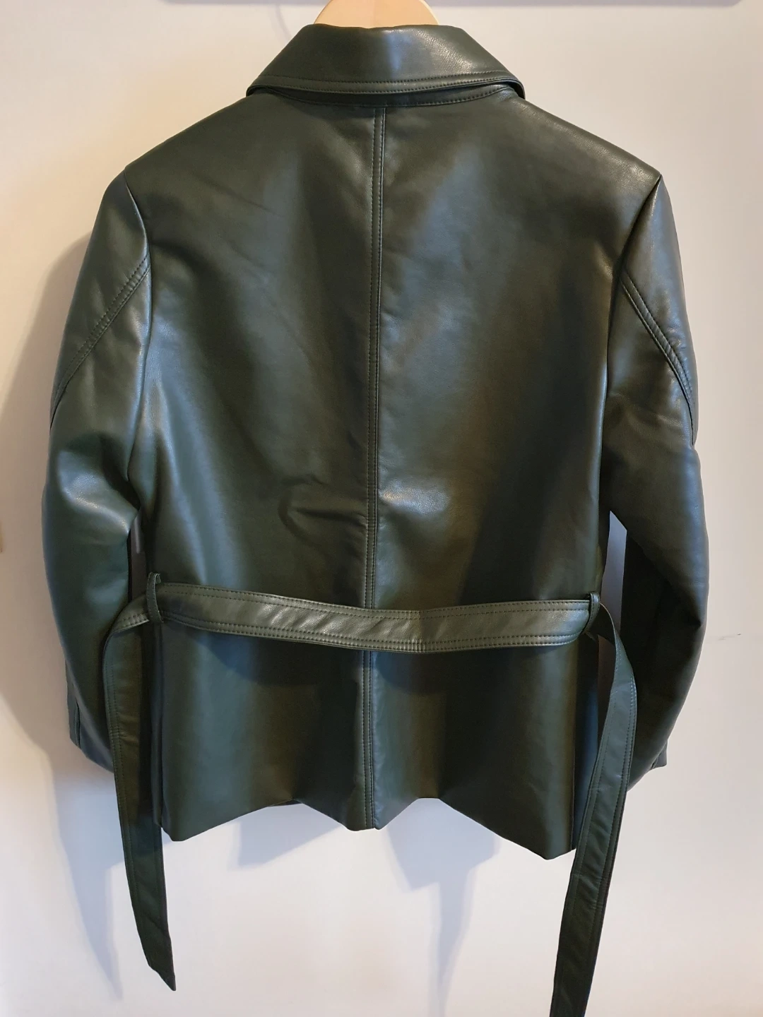 Faux Leather Belted Jacket - Greenš„