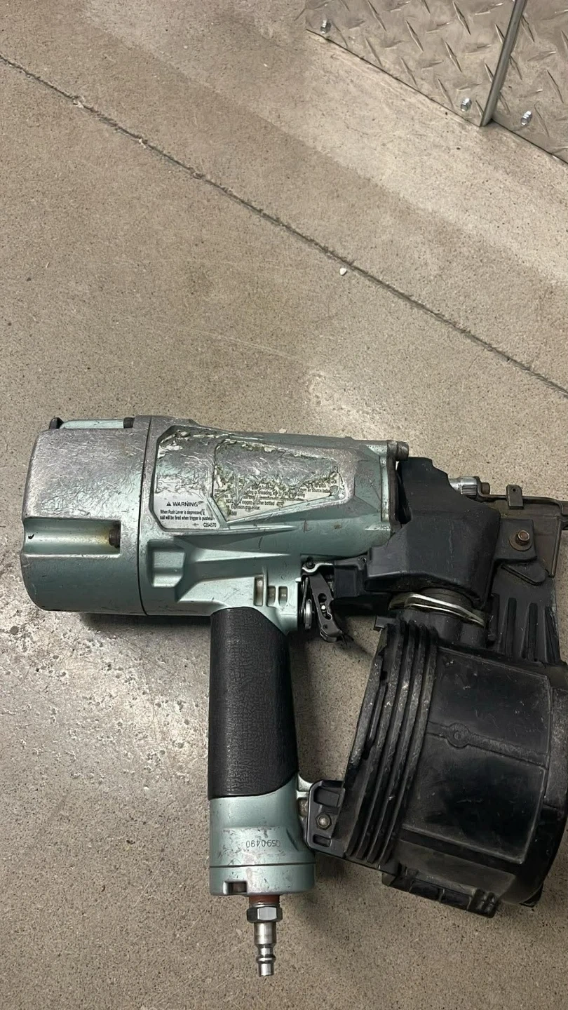 This is a Hitachi NR90GR framing nailer. It's a pneumatic tool designed for heavy-duty construction and framing tasks. It features a rotating belt hook for convenience on the job site. This nailer is great for contractors and DIYers needing to drive nails quickly and efficiently.parts only