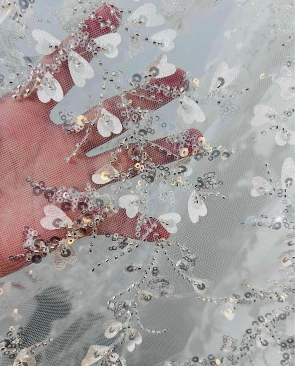 Every inch of this ethereal gown has been lavishly adorned with intricate hand beading and embroidery, elevating it to a level of unmatched sophistication. The delicate stitches and shimmering embellishments breathe life into the fabric, creating a mesmerizing spectacle that captures the essence of your timeless love story.