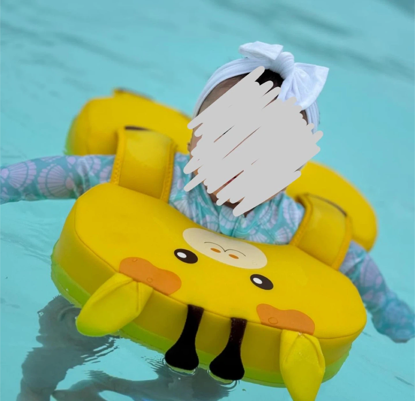 This adorable yellow giraffe float by KLEIOU is perfect for kids! It looks like it's in great condition and ready for some fun in the water