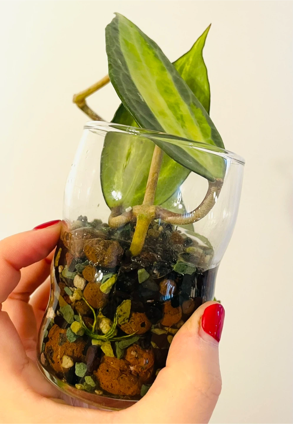 Stunning inner variegation with active growth and a healthy, visible root system. Currently established in semi-hydro (LECA/stones) for easy maintenance. Thrives in bright indirect light; water when the reservoir is low. A hardy, collector-grade plant perfect for any level.