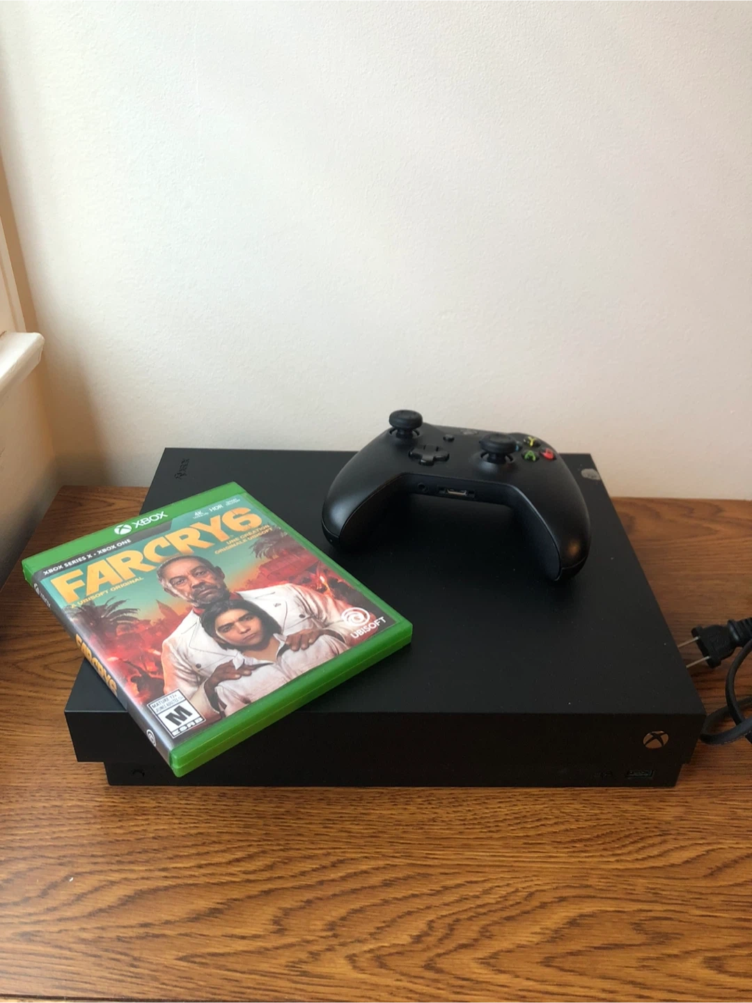 Xbox one X comes with a controller, HDMI cable, power cable and Fair Cry 6