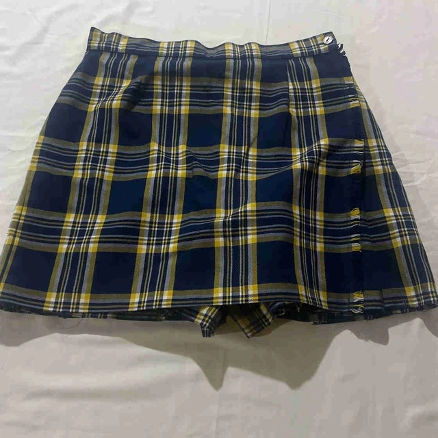 This St. Anne's ladies skirt, in a size 14, features a stylish blue and yellow plaid pattern and is in new condition. Perfect for adding a touch of classic charm to your wardrobe, this skirt is both versatile and fashionable. The skirt has a wrap around element in the front. Size: 14, Brand: St. Anne's, Colour: Blue, Yellow and white. Feel free to message if you have any questions!