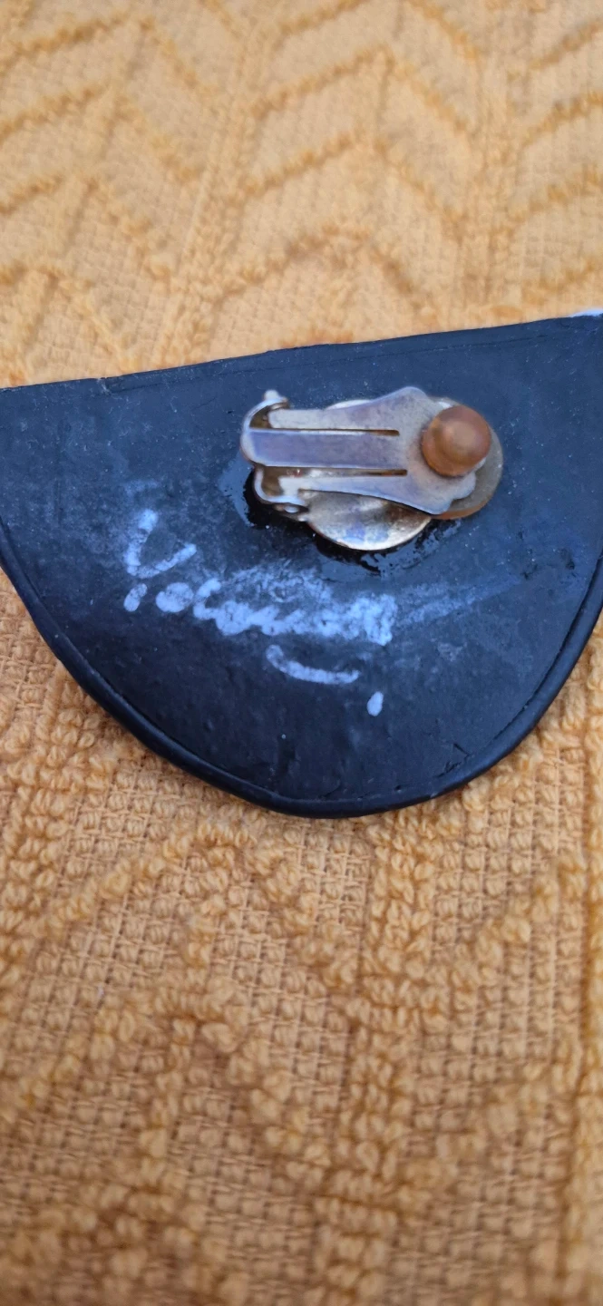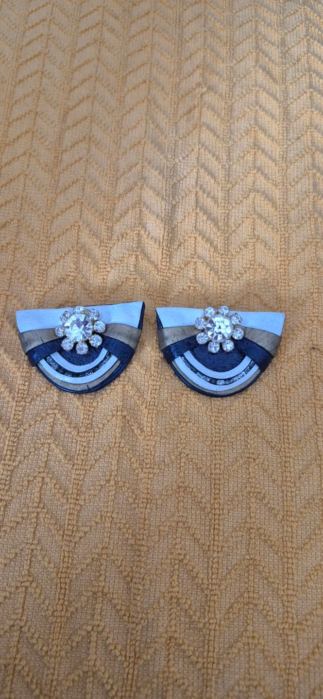 Selling a pair of vintage clip-on earrings. They have a unique design with a floral rhinestone detail on top. The earrings are in good condition and ready to add a touch of retro charm to your collection. $1.00 each.