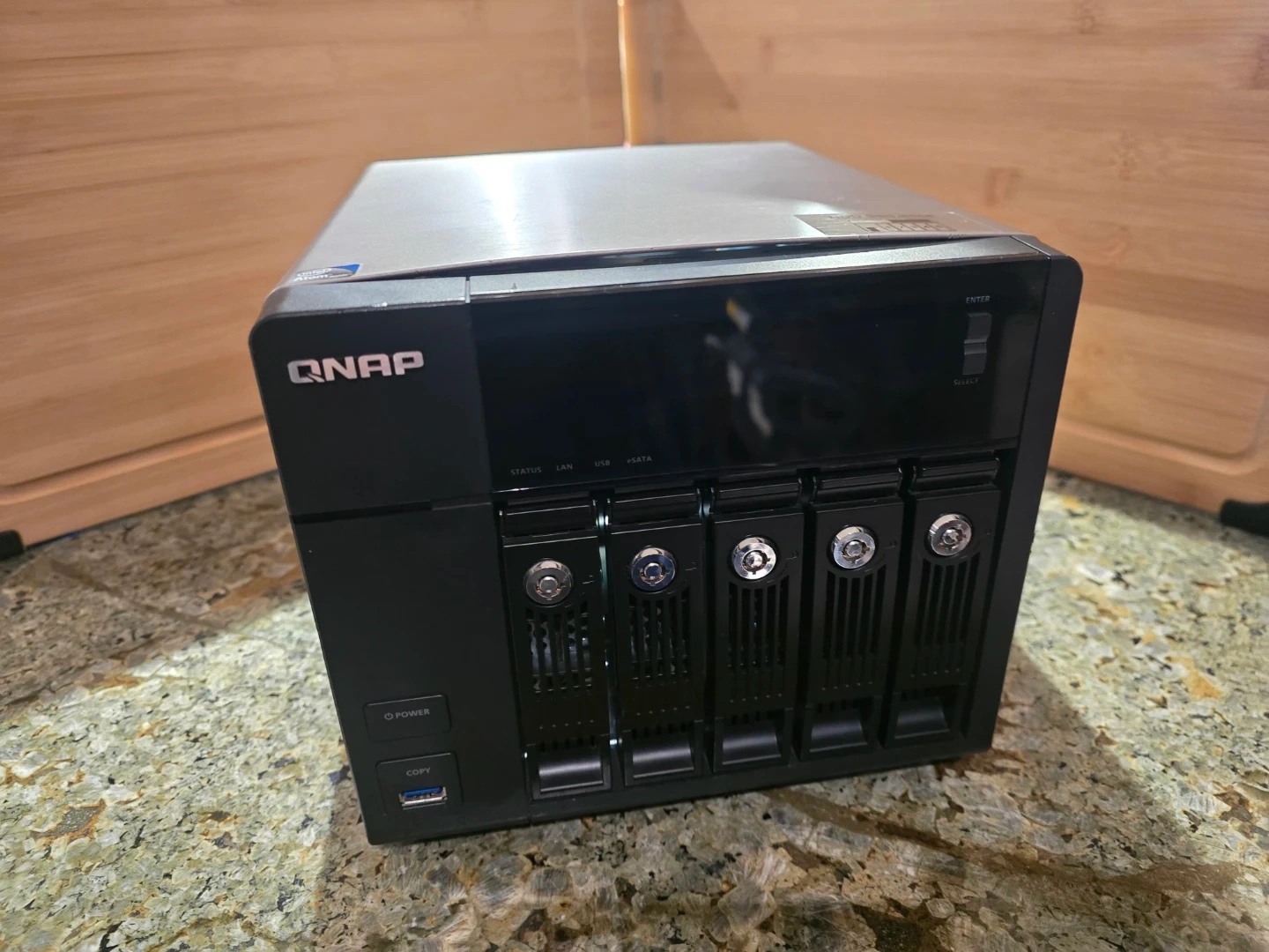 This QNAP TS-559 Pro II Network Attached Storage unit is ready for your data needs. It features five drive bays and multiple USB and eSATA ports. Includes two keys for drive bay access. No drives. No power cord.