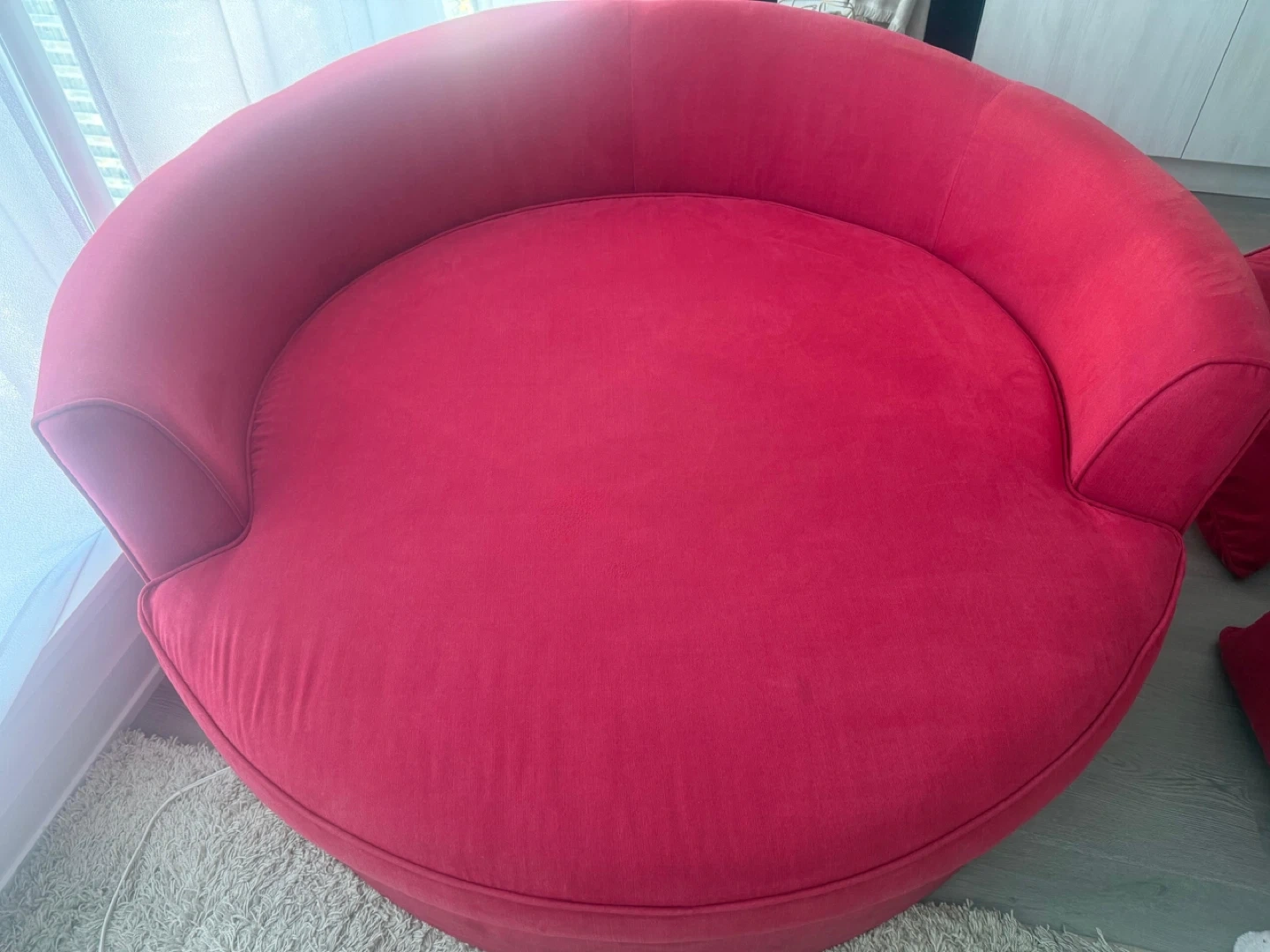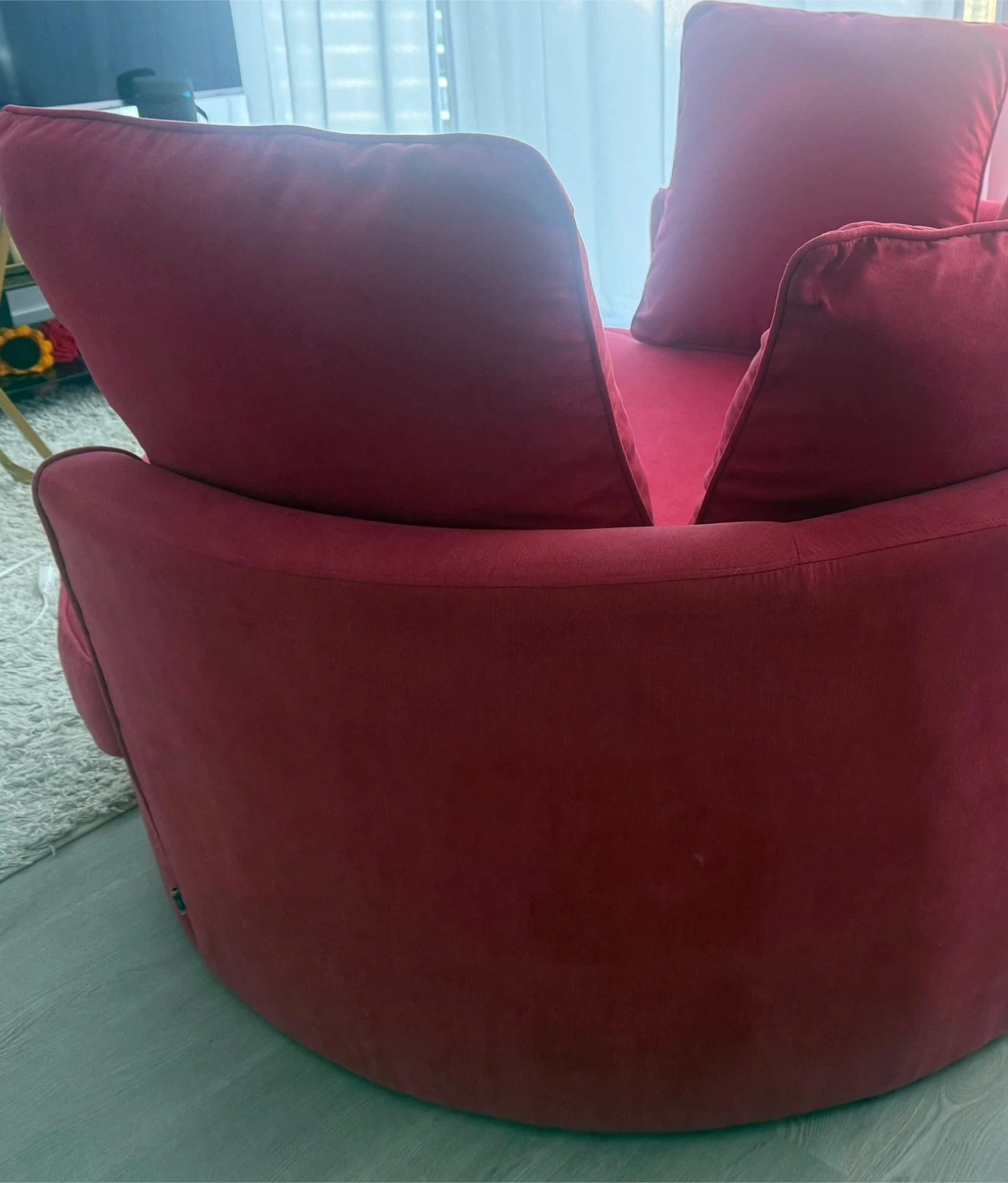 Beautiful cuddle chair. It's super cozy and perfect for relaxing, reading a book, or watching your favorite show with the family, as it's very spacious and comfortable.