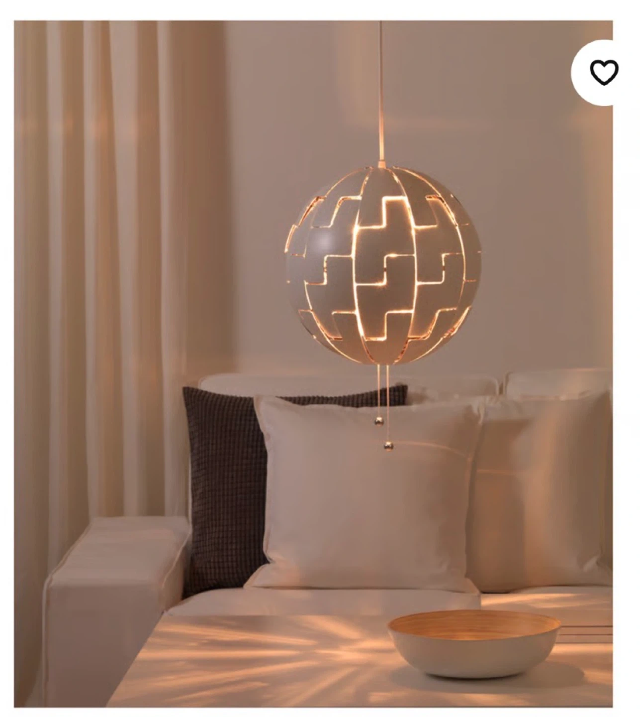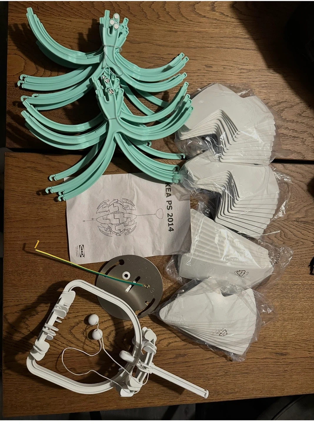 This is the IKEA PS 2014 pendant lamp, designed in white/silver colour. It's 35 cm (14") in diameter. All the parts for assembly are included in the package. You can easily change the colour if you choose.