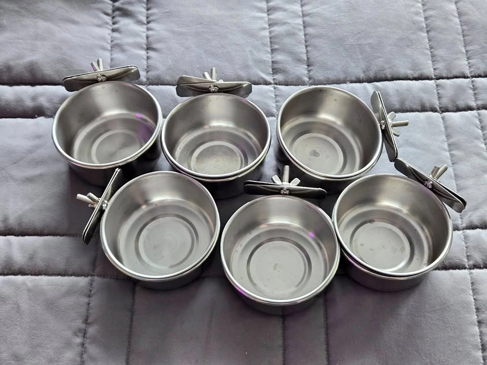 Selling a set of 6 versatile stainless steel pet feeding/water dishes. These were used for only about 2–3 months and are in excellent, like-new condition with no rust or damages. I paid approximately $40 for the set, but they just aren't ideal for my specific setup.