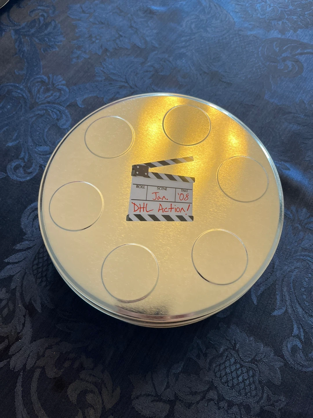 I'm offering a DHL film tin, complete with a set of CDs. This unique collectible includes a metal film canister adorned with DHL branding, adding a touch of cinematic flair to your collection. The CDs inside are also DHL-themed, making this a must-have for any DHL enthusiast or collector of unique memorabilia. This item is in used condition.