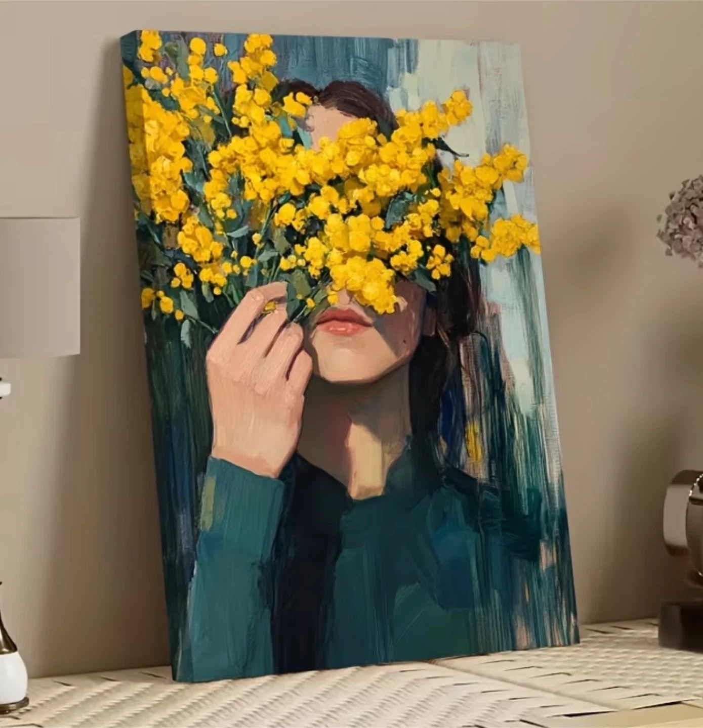 Canvas Art Painting/Print of Woman with Yellow Flowers