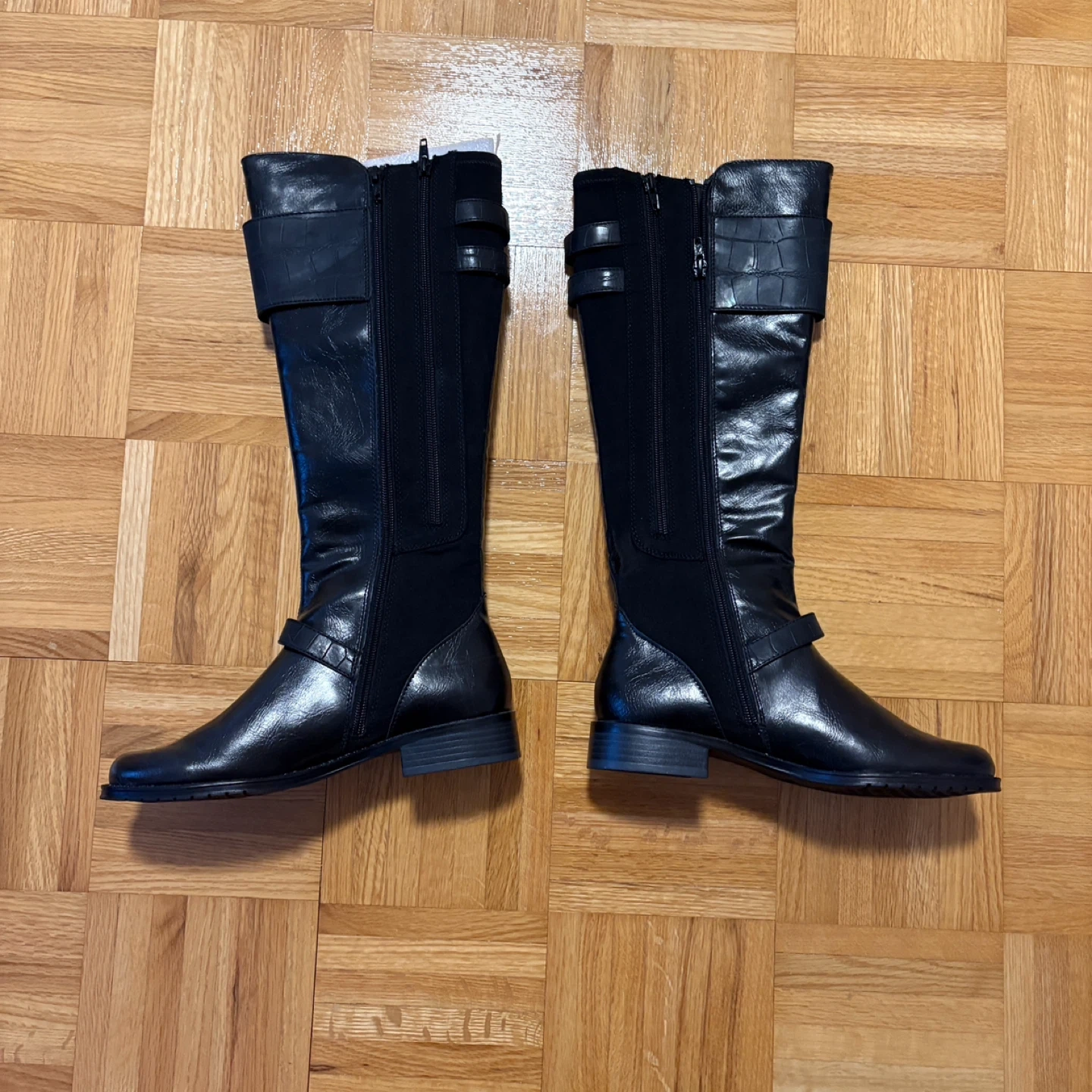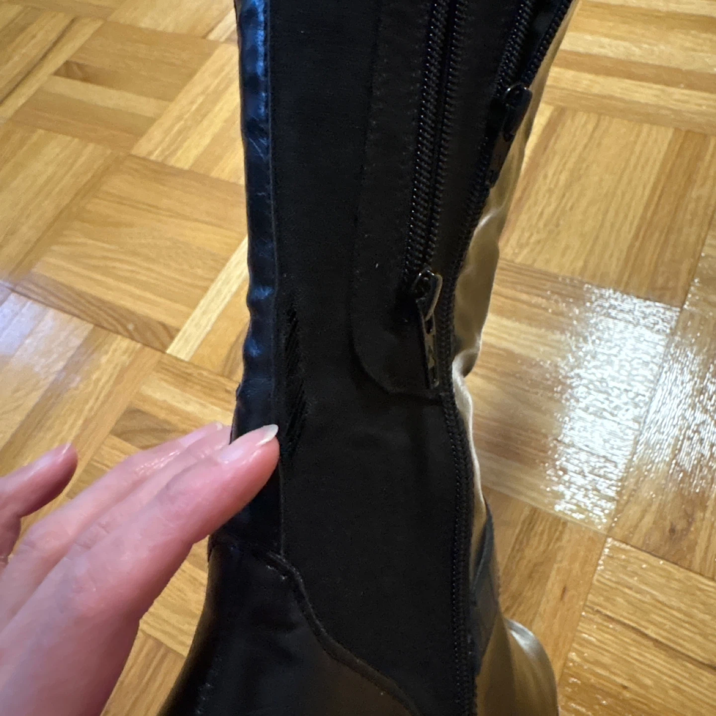 BNIB but has a defect in left boot as shown in last 3 photos - unfortunately I didn’t check properly when the boots when they arrived and was not aware there is a hole in the fabric area closest. Normally I would attempt to repair my clothing items/shoes but I already have a large pile of clothing items waiting for me to repair & own more than enough shoes. So if you are willing/know how to repair/sew this, get this boots at a discount, mend, rock them, and make me jealous!