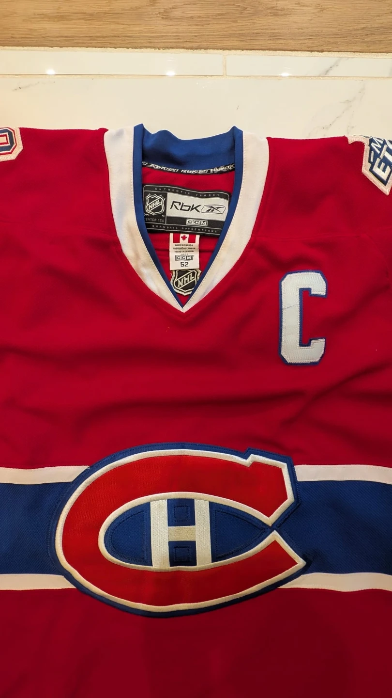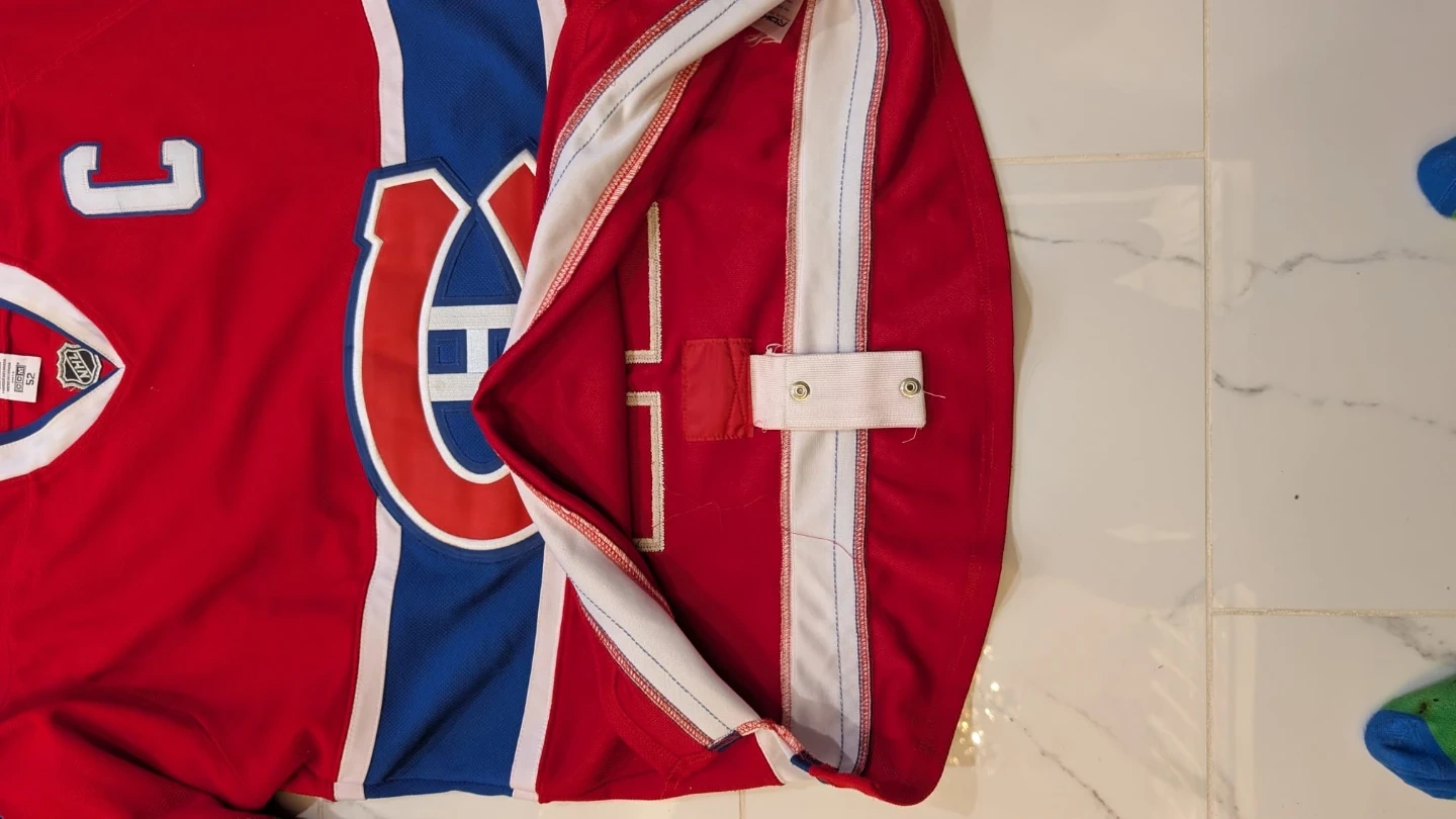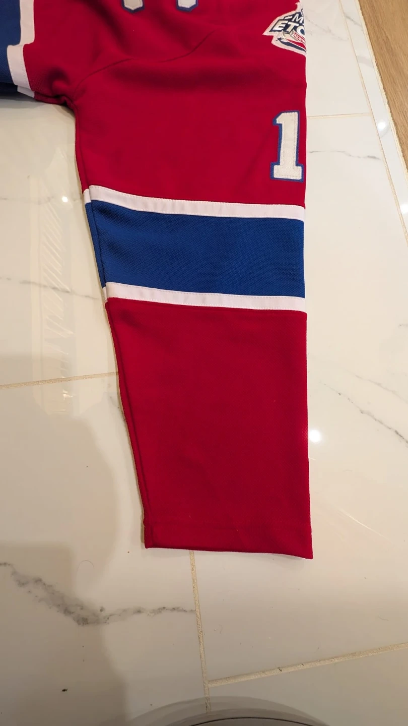 Excellent pre-owned condition. The crest and numbering are crisp with no major fraying. The fabric is bright with no visible snags or stains. This has been a display piece and is a must-have for any serious Habs collector