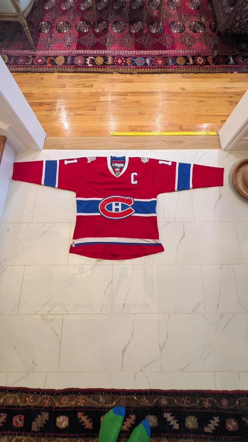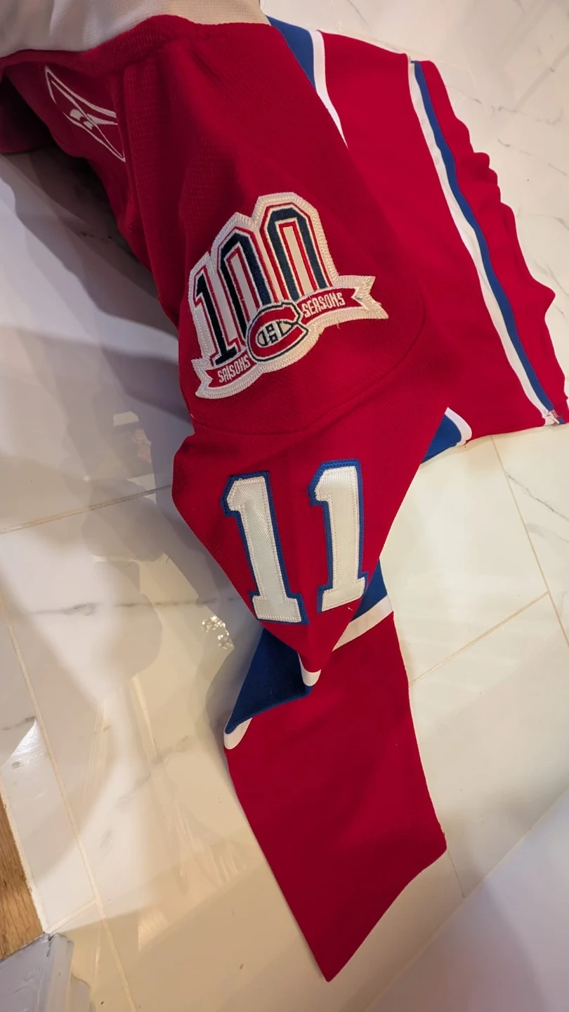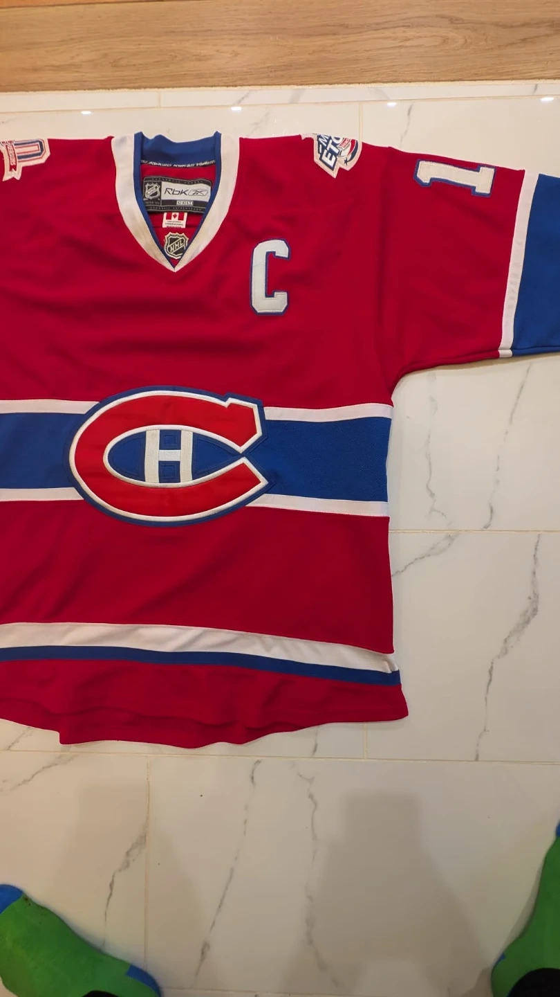 Excellent pre-owned condition. The crest and numbering are crisp with no major fraying. The fabric is bright with no visible snags or stains. This has been a display piece and is a must-have for any serious Habs collector