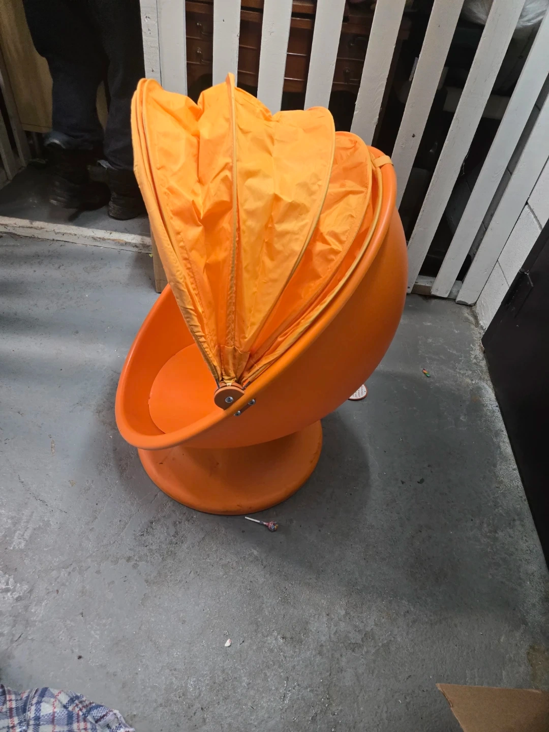 Orange Pod Chair with Retractable Canopy