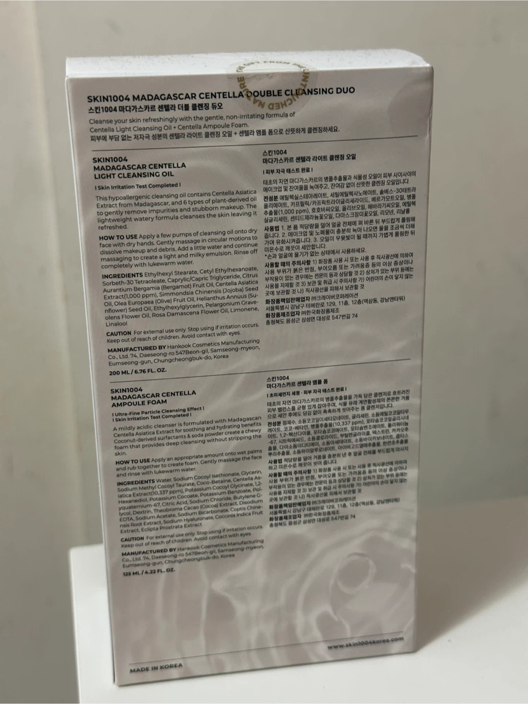 Selling a SKIN1004 Madagascar Centella Double Cleansing Duo, which includes the Light Cleansing Oil (200 ml / 6.76 FL. OZ.) and the Ampoule Foam (125 ml / 4.22 FL. OZ.)
