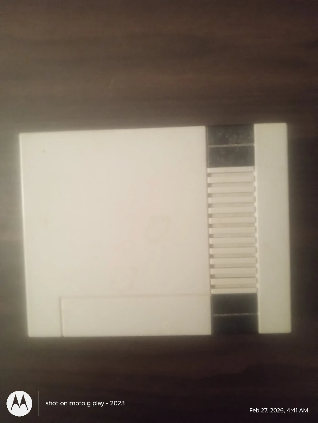 This is a Nintendo Entertainment System console. It has a power and reset button. It includes ports for controllers.