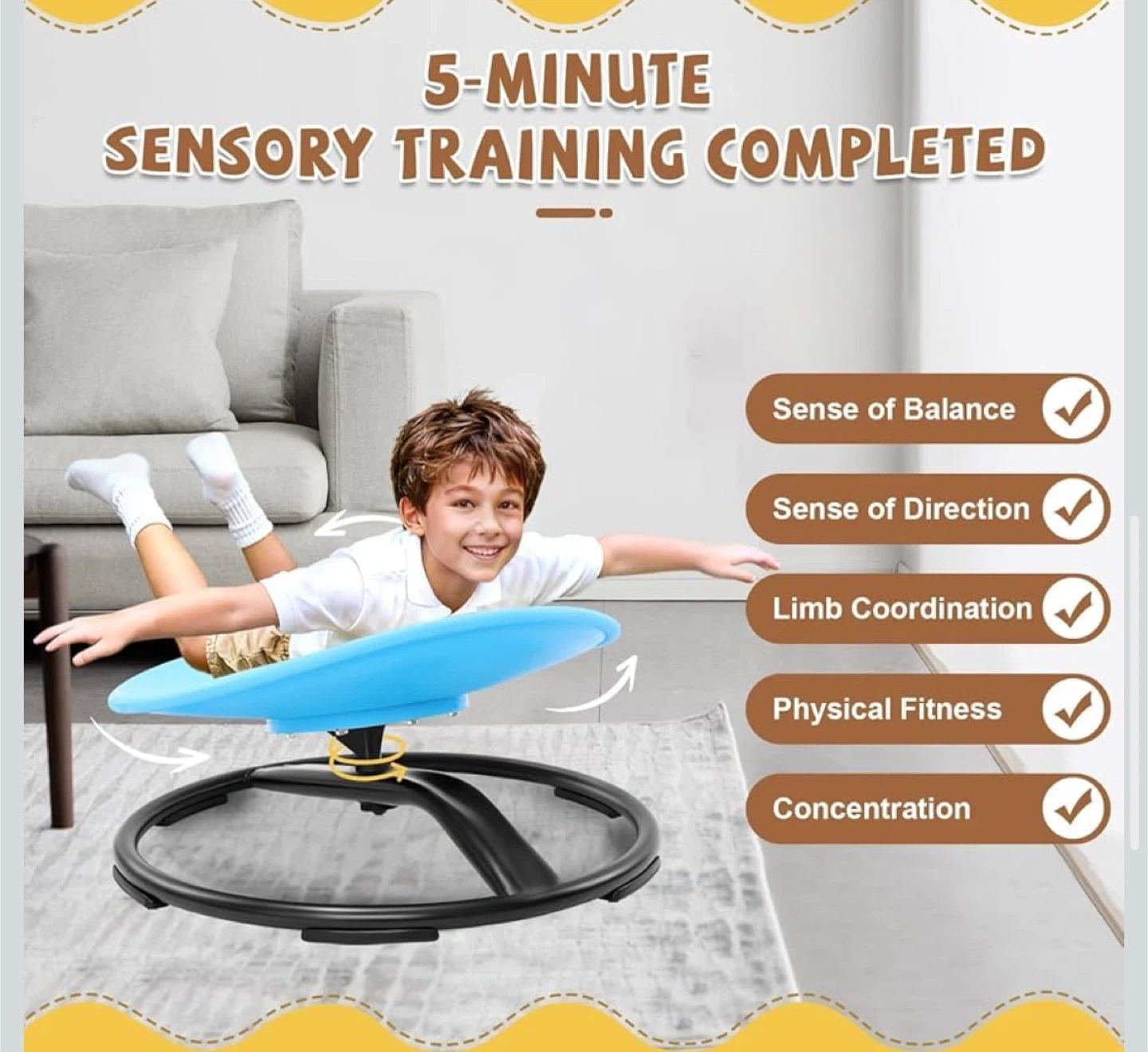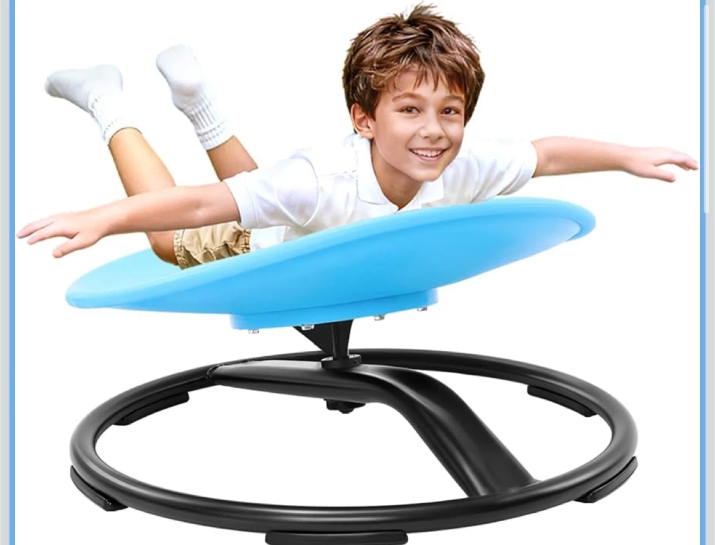 This blue spinning disc is designed for children's sensory training. It helps improve balance, direction sense, limb coordination, physical fitness, and concentration. It's suitable for kids to use indoors for active play and development.