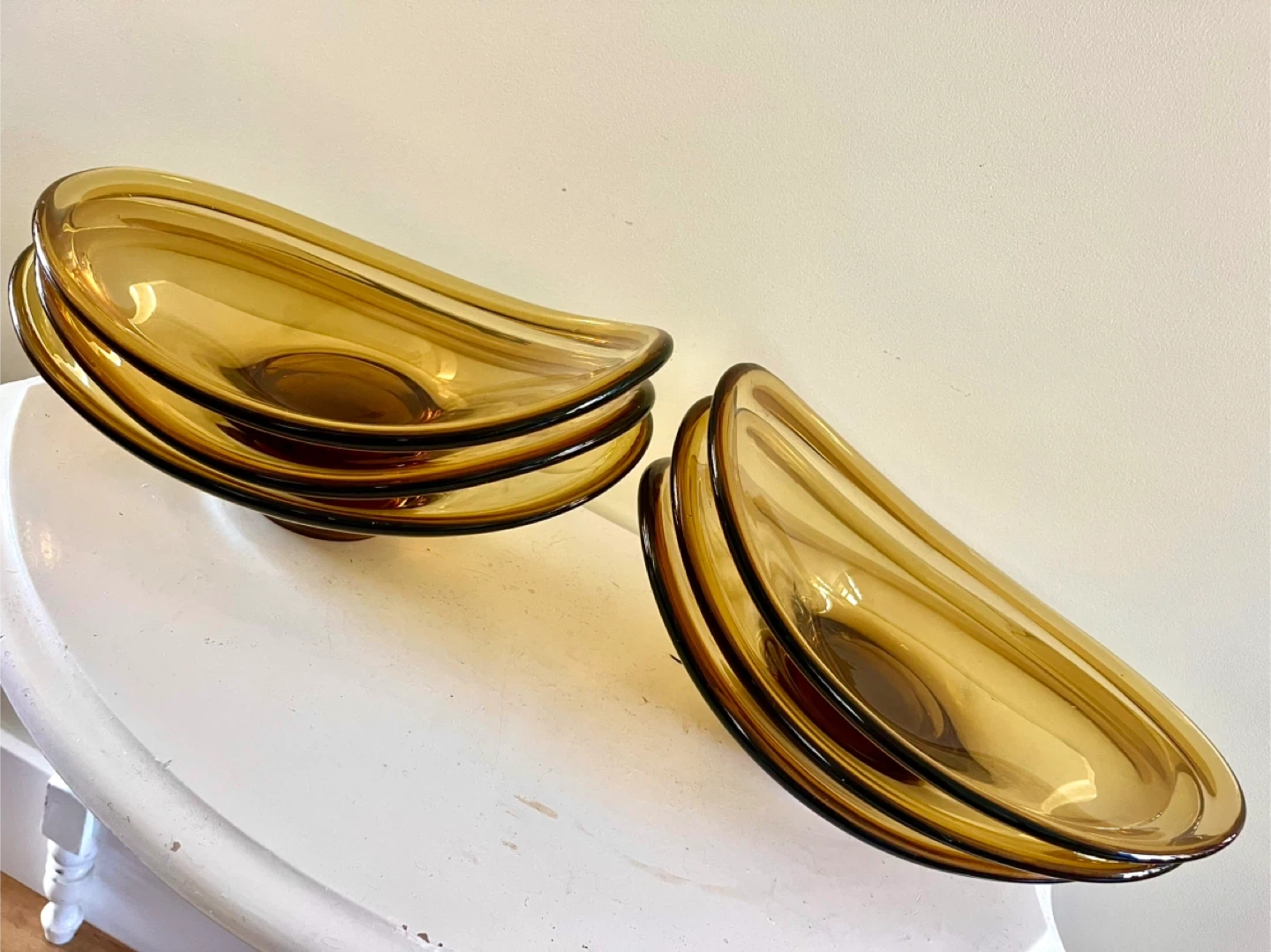 Gorgeous set of 6 amber glass bowls, variously attributed to Per Lutken, Murano and Lotta Pettersson and described online as: Vintage Holmegaard Amber