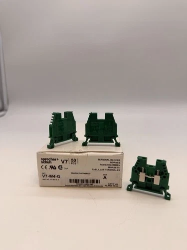 A NEW Sprecher + Schuh V7-W4-G Terminal Block, green color, supplied in the original box (50 pieces per box).