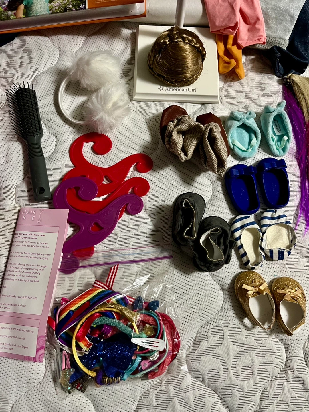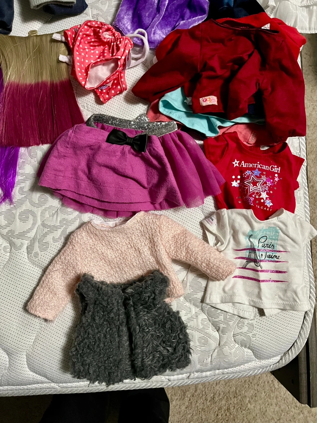 Selling 2 American Girl dolls, accessories and two beds. Includes clothing, shoes, hair accessories, and a 'Photo Shoot' tips and tricks book.