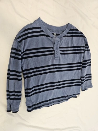 Gap waffle -knit Henley shirt in blue and black stripes.