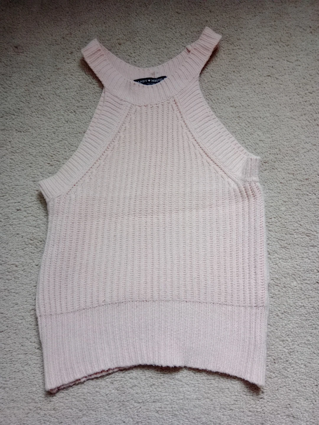Selling a Brandy Melville knit tank top in a soft pink colour. It's a versatile one size fits most style. Great for layering or wearing on its own!