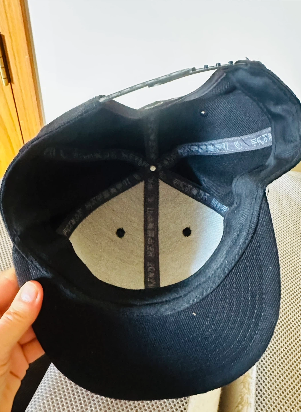 This is a black snapback hat with the A Perfect Circle logo embroidered on the front. The back of the hat has "a perfect circle" embroidered. It features an adjustable snap closure for a comfortable fit.